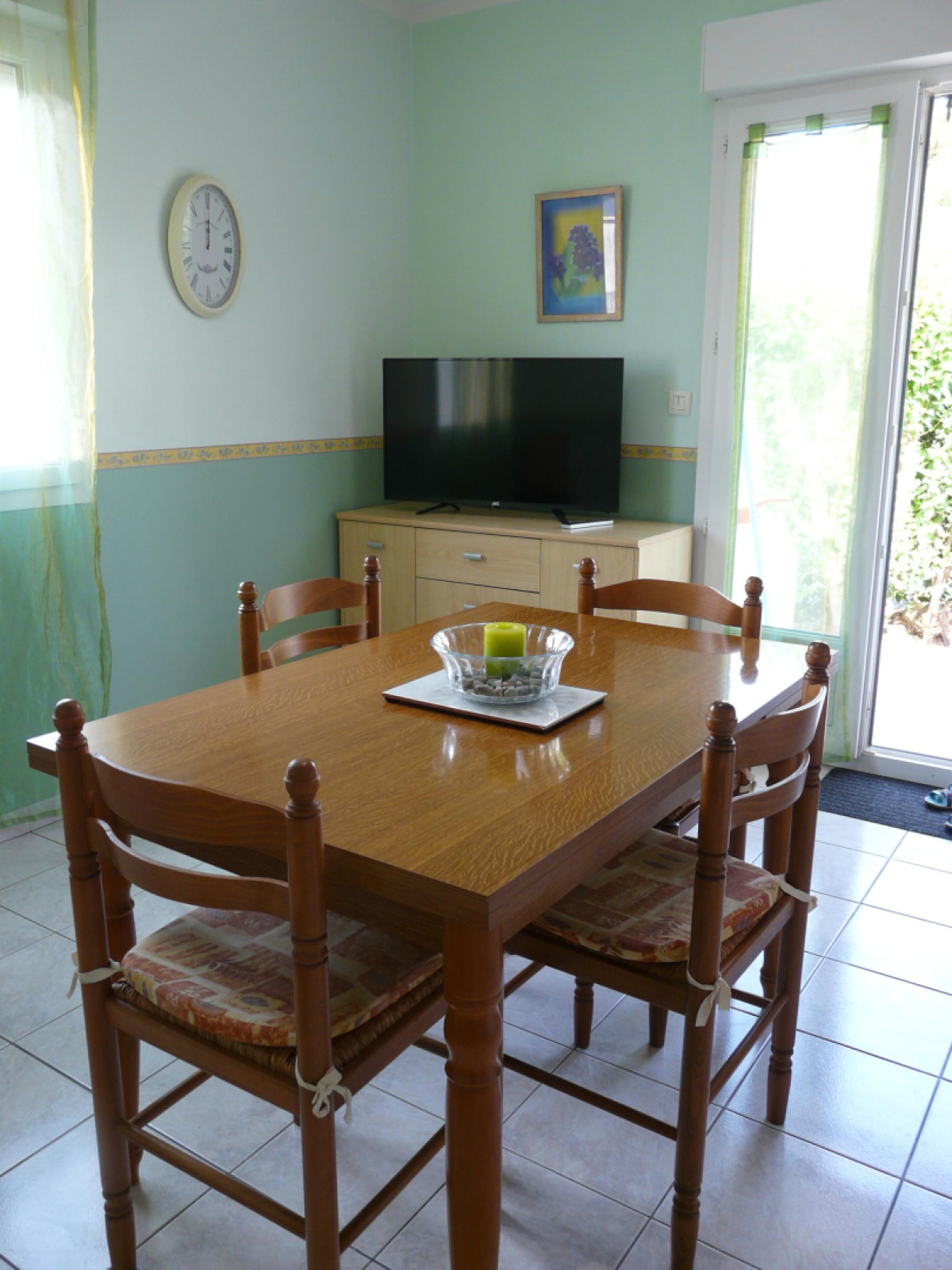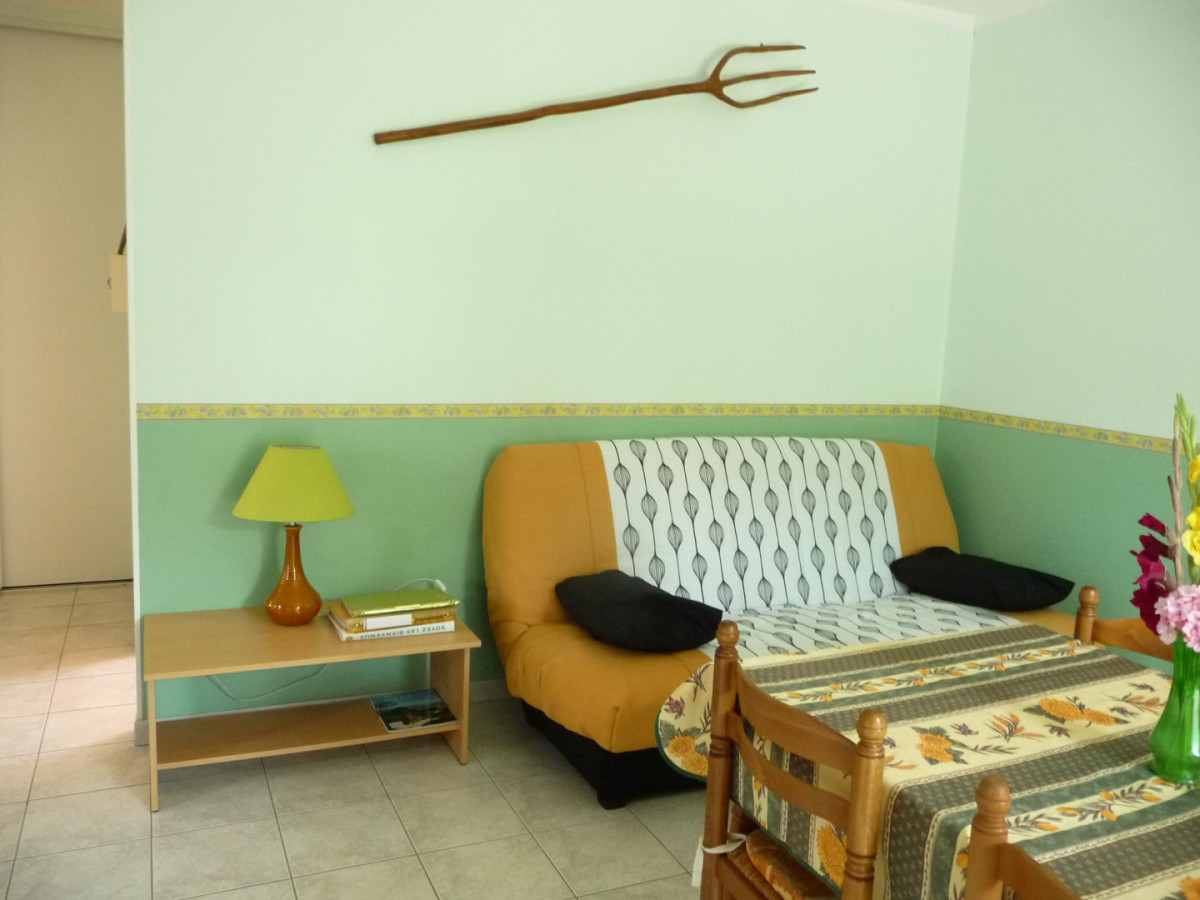– Un espace salon/salle à manger avec clim réversible, télévision et canapé ;