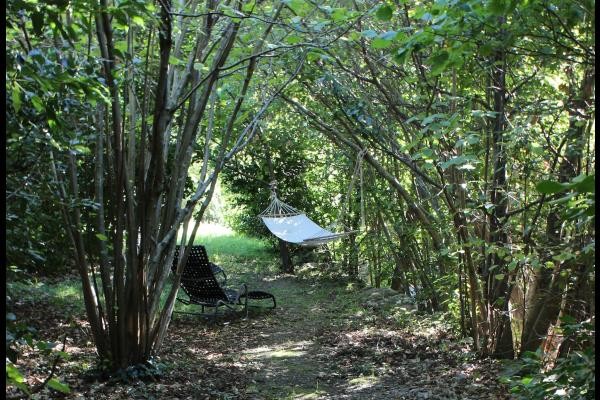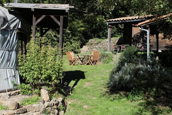 Les deux yourtes sont entourées des coins privé, chaise-longues du jardin et hamacs sont en disposition