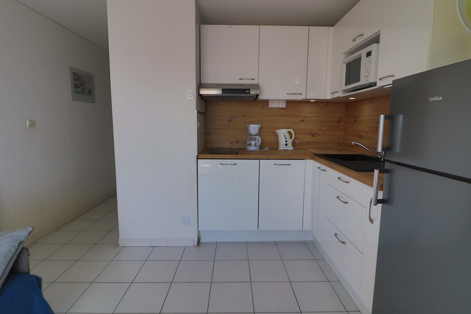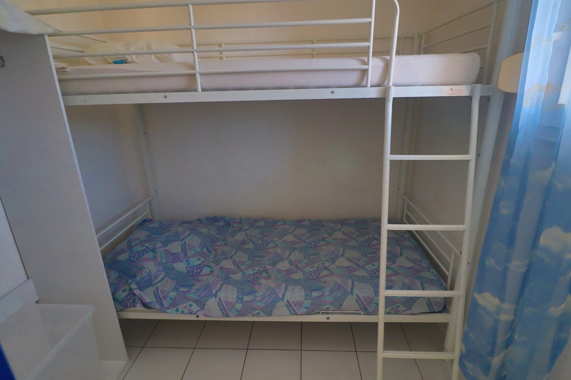L’appartement peut accueillir jusqu’à 4 personnes et propose deux chambres : une avec un lit double (140 cm) et l’autre avec deux lits simples (90 cm). La cuisine est entièrement équipée (plaques, micro-ondes, réfrigérateur, cafetière, lave-linge).