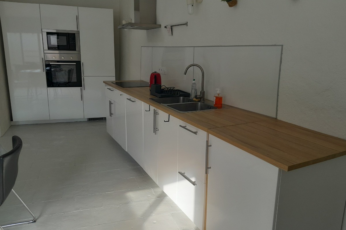 La cuisine, entièrement équipée, vous offre tout le confort nécessaire avec un four, un lave-vaisselle, un micro-ondes et un grand réfrigérateur-congélateur. Vous y trouverez également une cafetière à piston, une bouilloire et un grille-pain, ainsi que fer et table à repasser pour votre commodité.