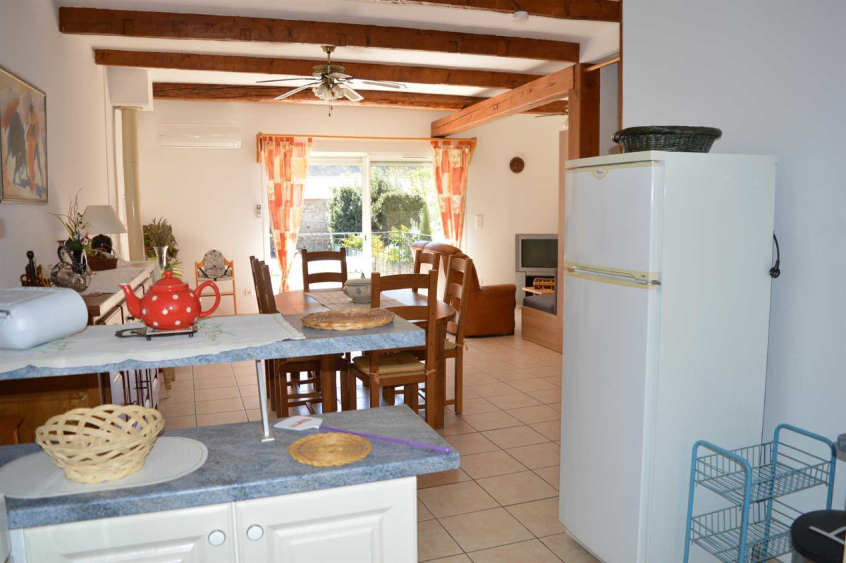 Au rez-de-chaussée, profitez d’une pièce de vie spacieuse, avec climatisation réversible comprenant un séjour/salon (canapé convertible) une cuisine équipée (four, micro-ondes, réfrigérateur avec compartiment congélateur, hotte, plaque de cuisson, lave-vaisselle, cafetière, bouilloire), une salle d’eau avec wc. Un poêle à bois pour des soirées chaleureuses en demi-saison ou hiver.