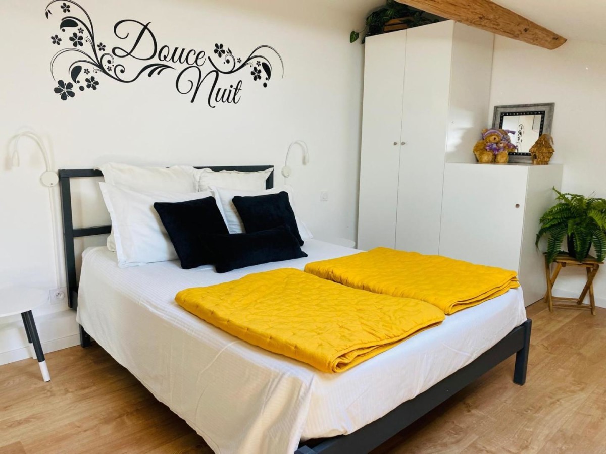 – Une chambre lumineuse, douillette et joliment décorée à l’étage avec un lit en 140×190 cm, ainsi qu’un espace de télétravail ;