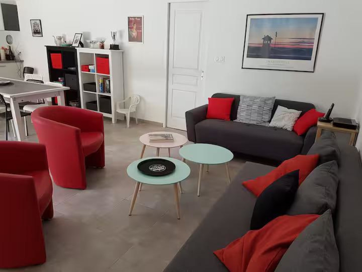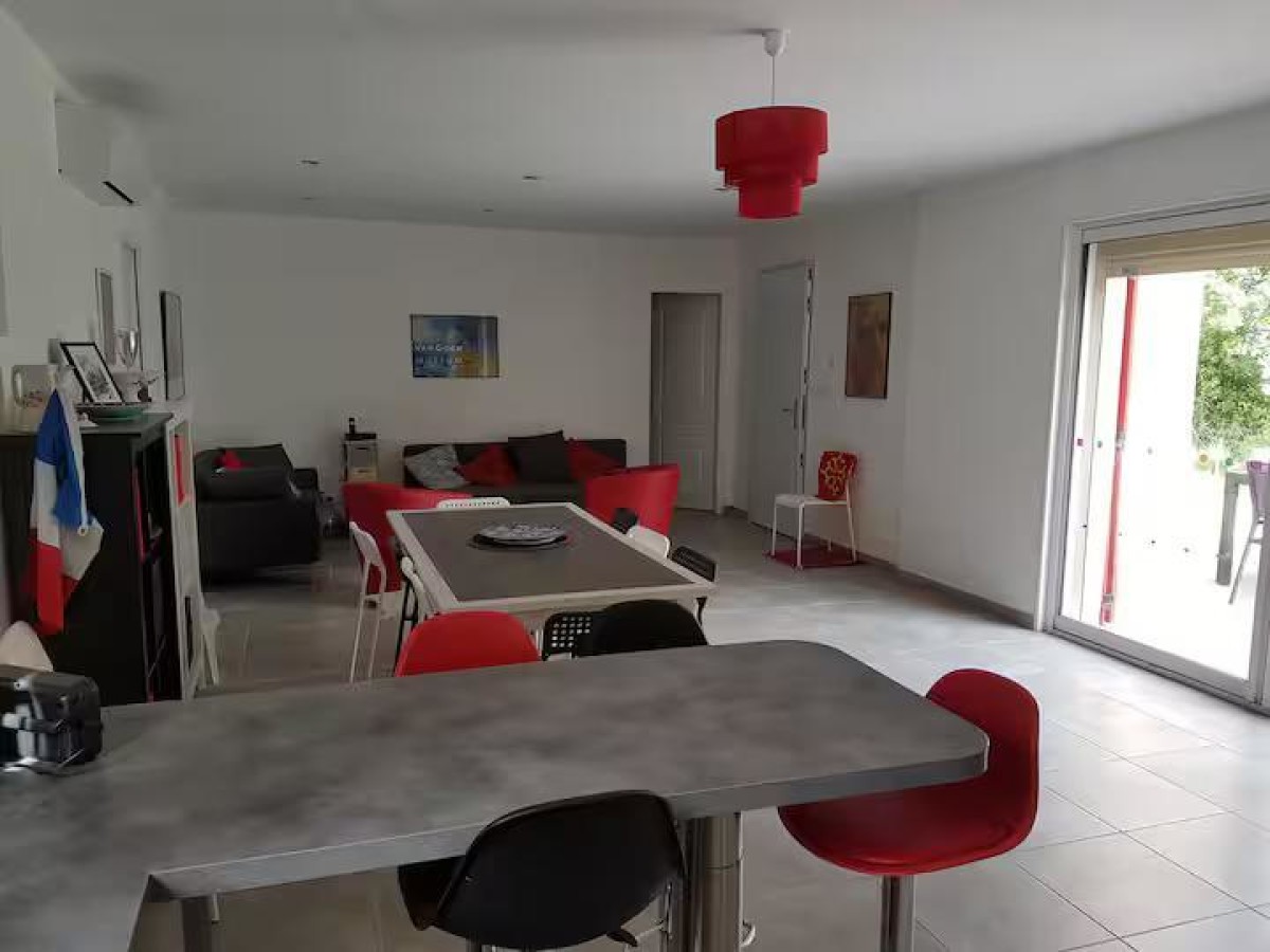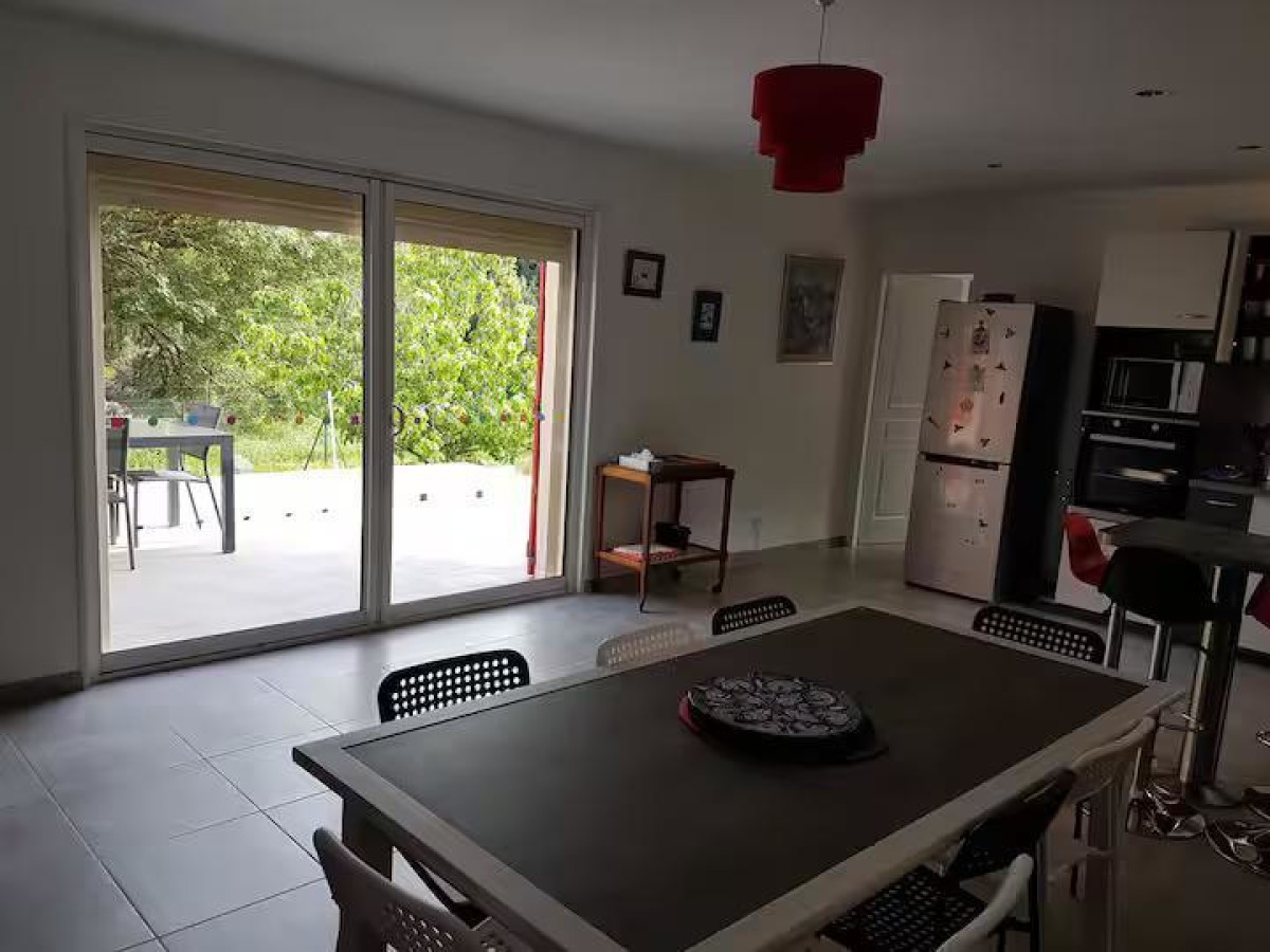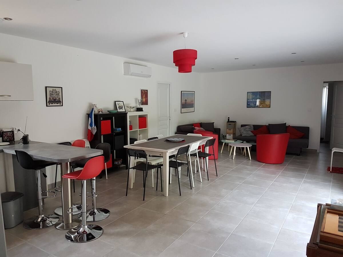 – Un séjour de 42m2 avec espace salon, espace repas, et une cuisine ouverte tout équipée (plaques de cuisson, four, cafetière, lave-vaisselle)
