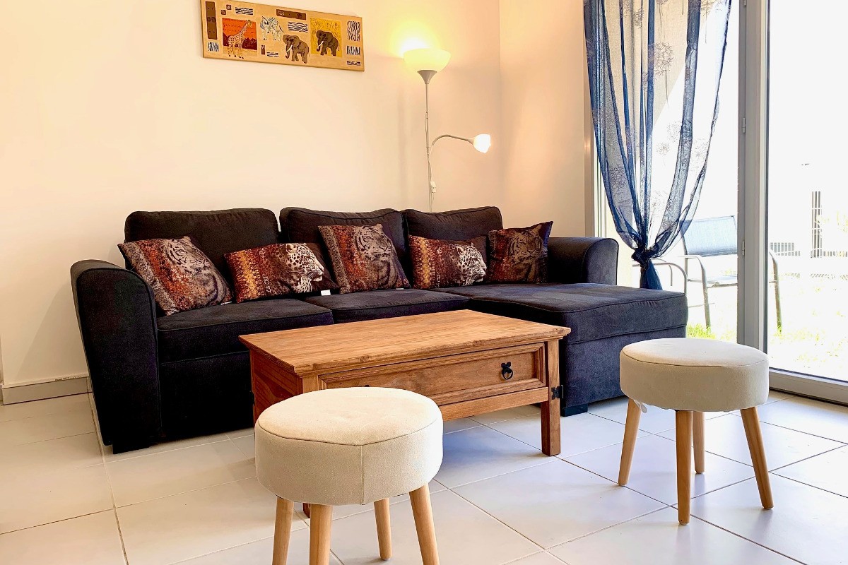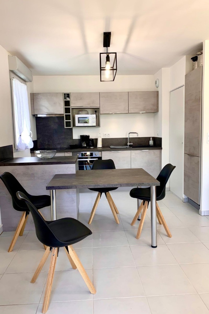 Au rez de jardin d’une résidence de standing située à deux pas de la plage, de l’école de voile des tennis et du port de Mèze, Très bel appartement confortable et spacieux .. Il comprend une belle pièce à vivre climatisée avec cuisine américaine équipée ( lave-vaisselle, lave-linge, sèche linge- plaque vitro céramique, four, hotte aspirante, micro- ondes, réfrigérateur/ congélateur), un salon avec un canapé convertible en 140 cm + TV et un espace repas. Le tout donnant accès à un jardinet. ou vous pourrez prendre vos repas , bains de soleil .