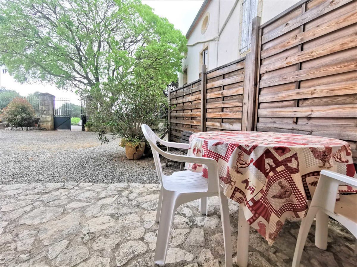 À l’extérieur, vous profitez d’un environnement naturel composé d’un terrain et d’une pinède non clos, partagés avec un second gîte situé à l’étage.