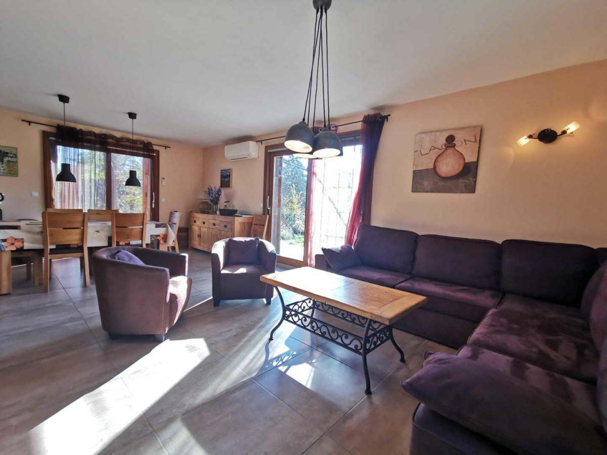 La maison de 125 m² est équipée d’une climatisation reversible et d’une cheminée (forfait bois possible, 50€/semaine).