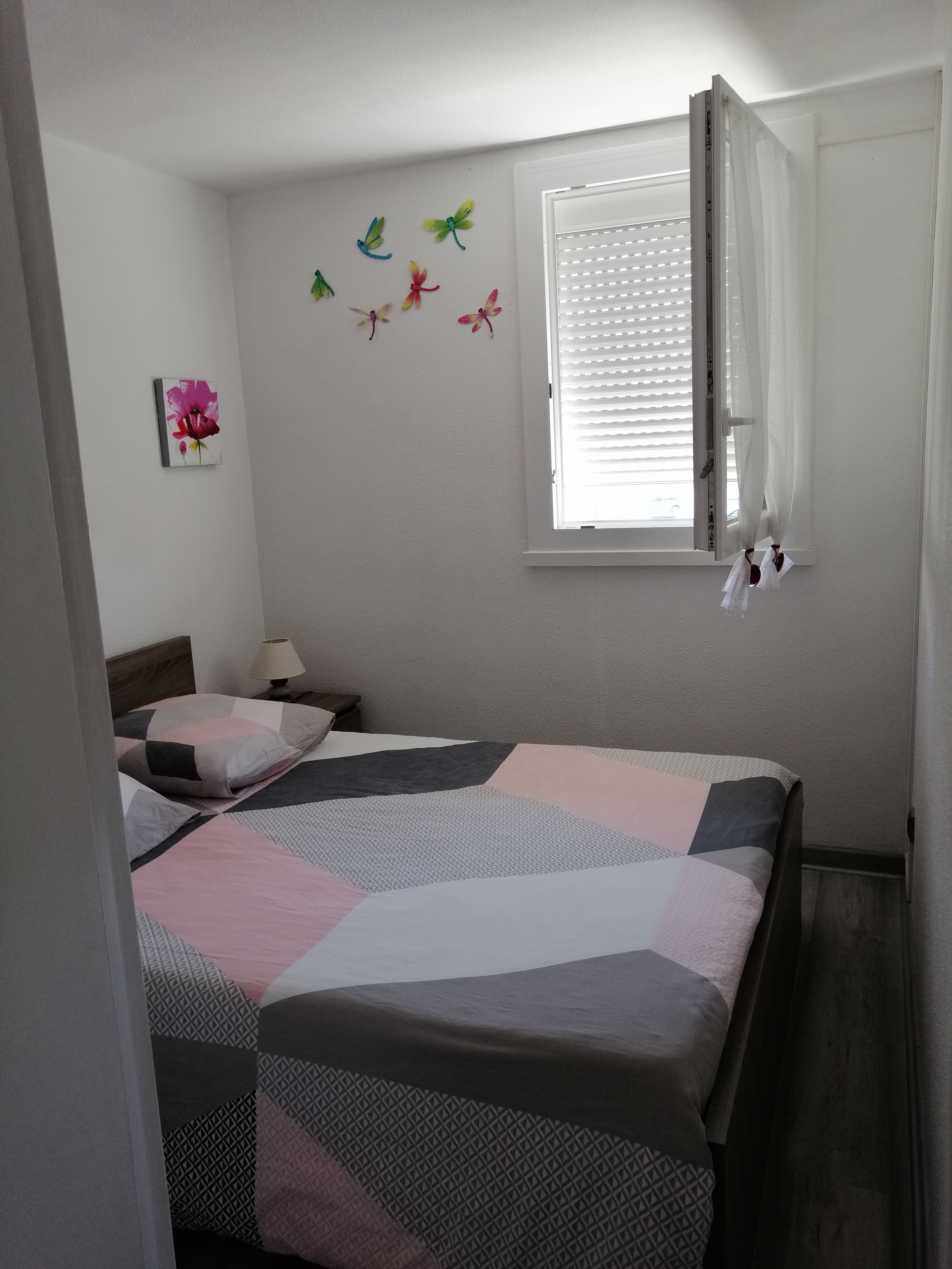 1 chambre avec 1 lit 140×190, avec placard, 1 salle d’eau neuve et WC séparés.