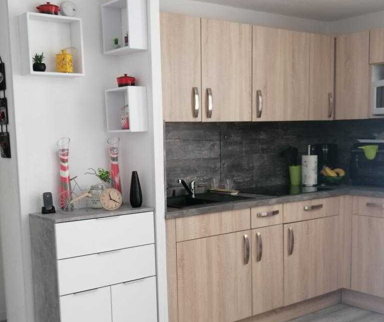 Composé d’une entrée donnant sur salon avec 1 canapé-méridienne d’angle, sur une cuisine équipée et sur une loggia/balcon avec une table et 6 chaises, TV murale grand écran. Volet électrique et double vitrage.
