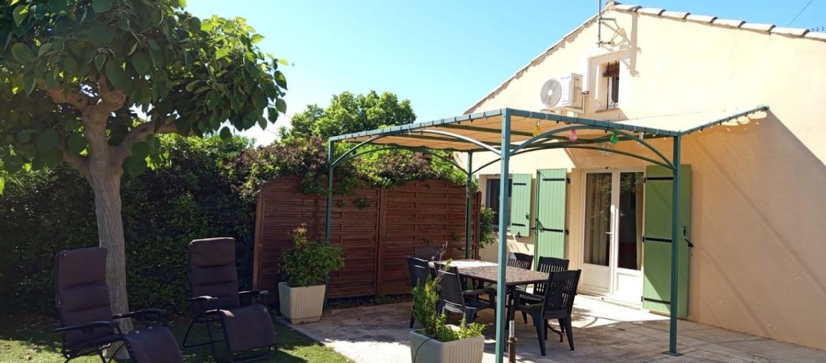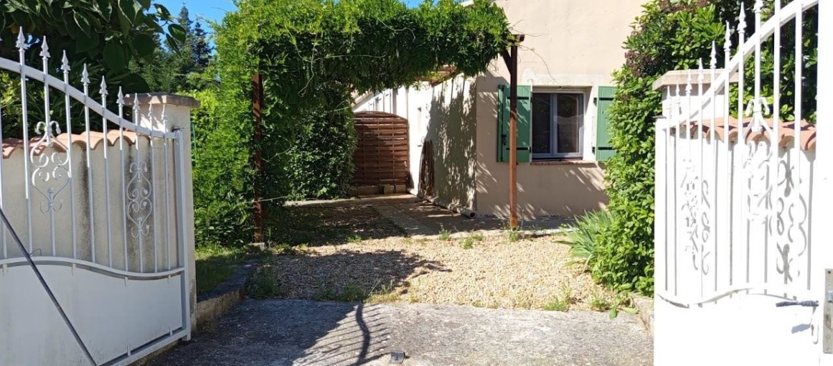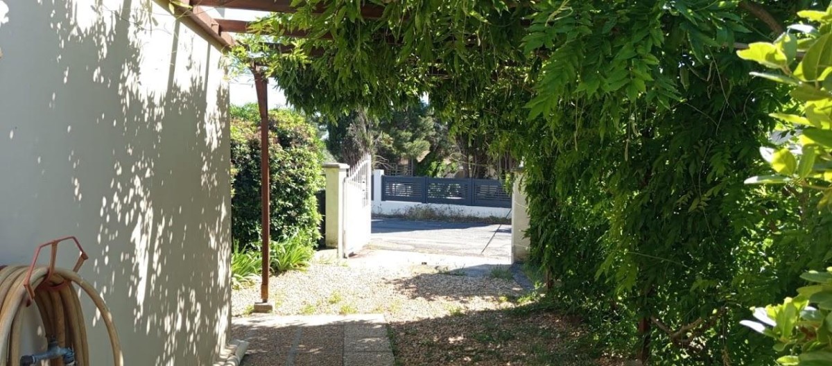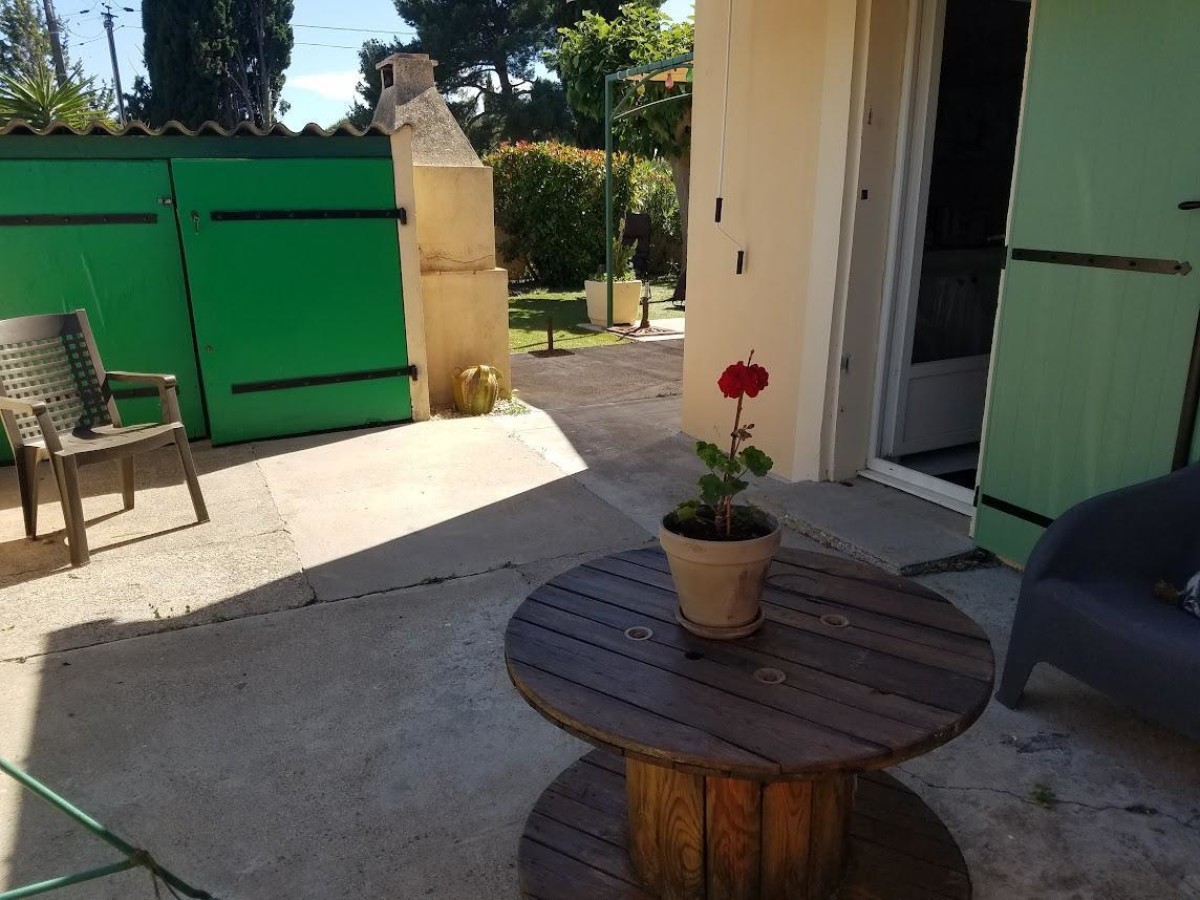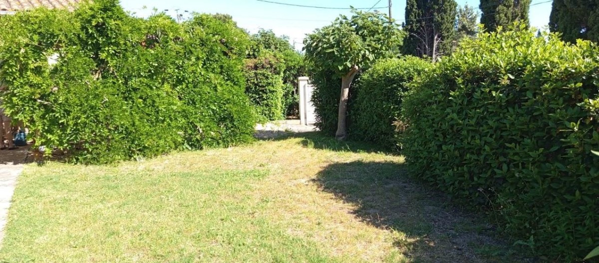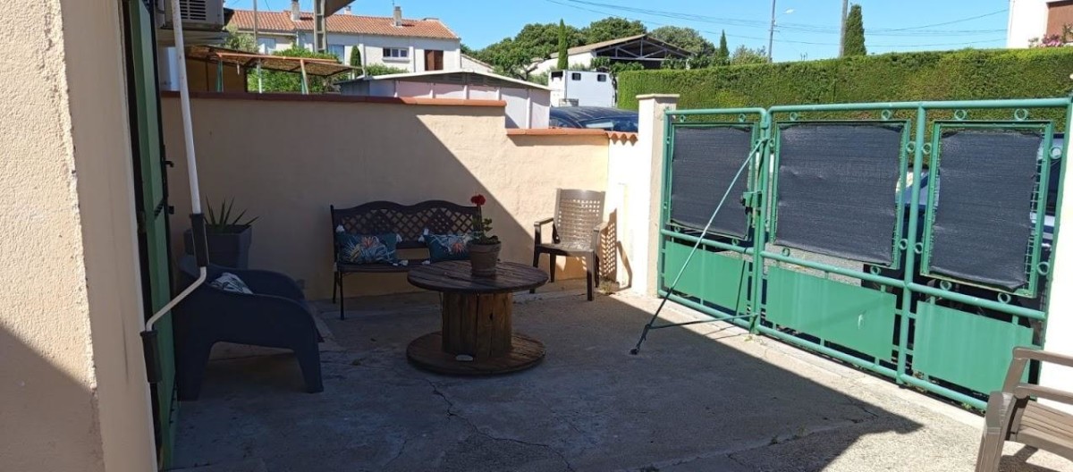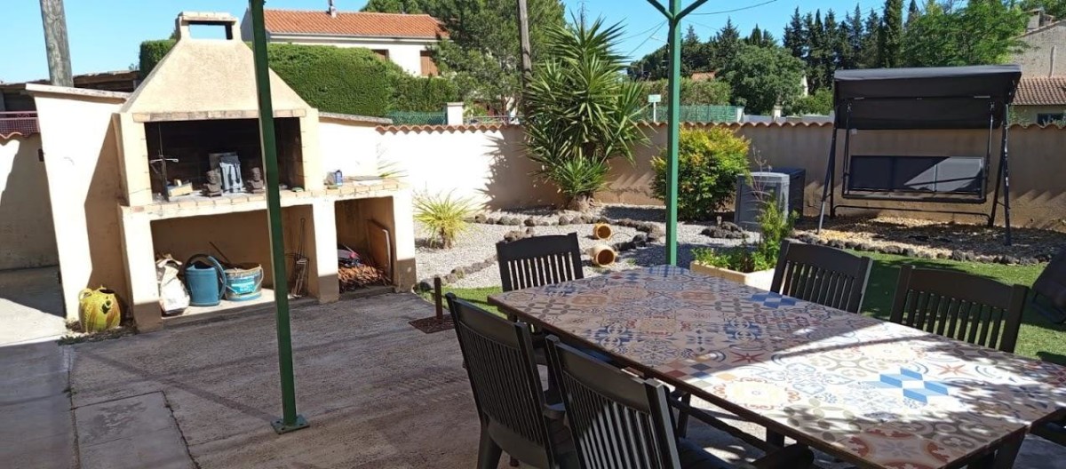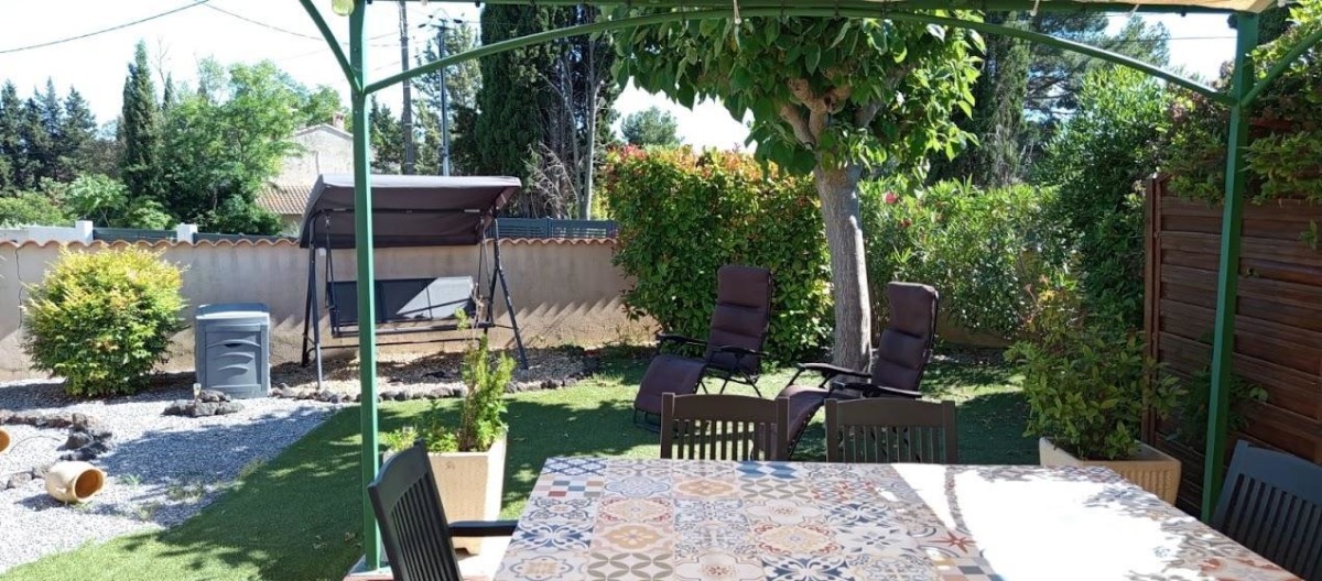 Terrain clos de 370 m² avec jardin, terrasse, salon de jardin, barbecue, parking privatif.
