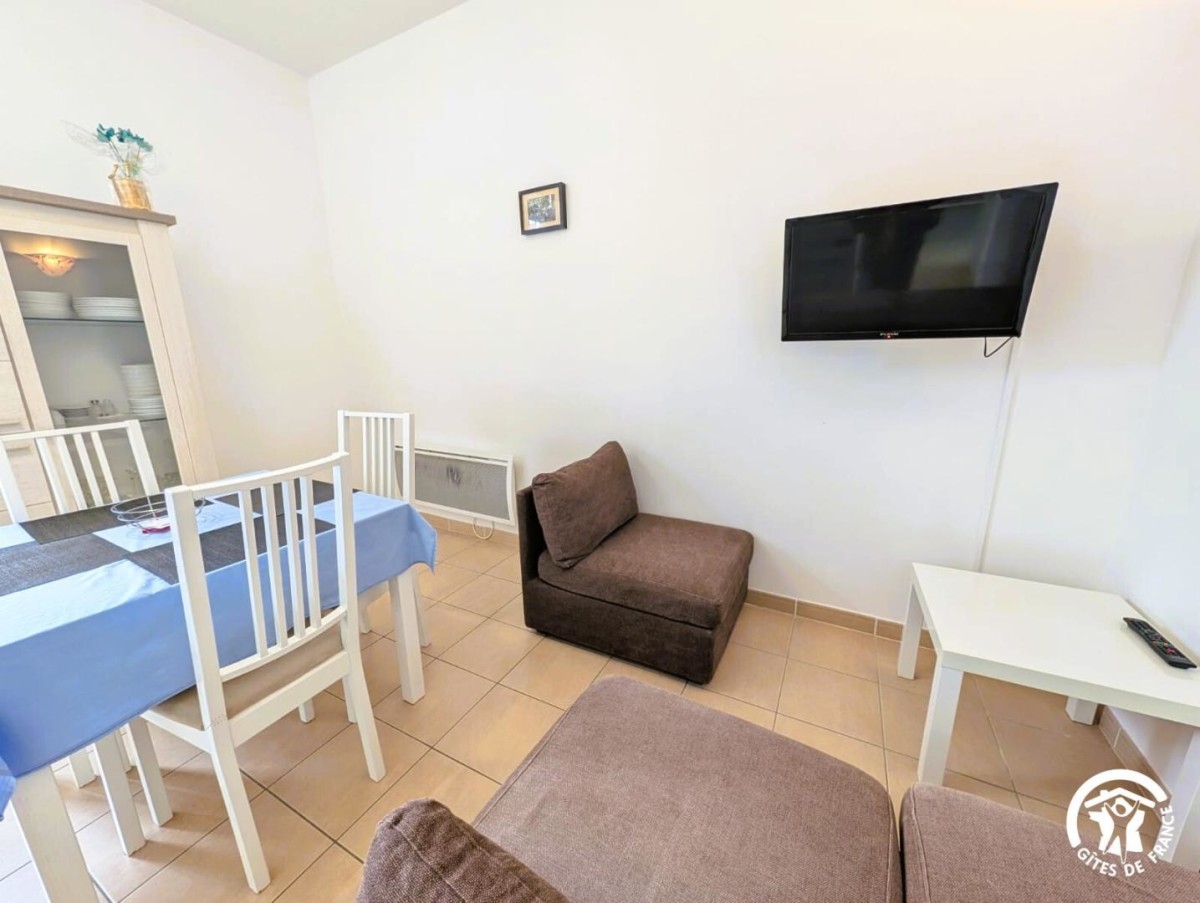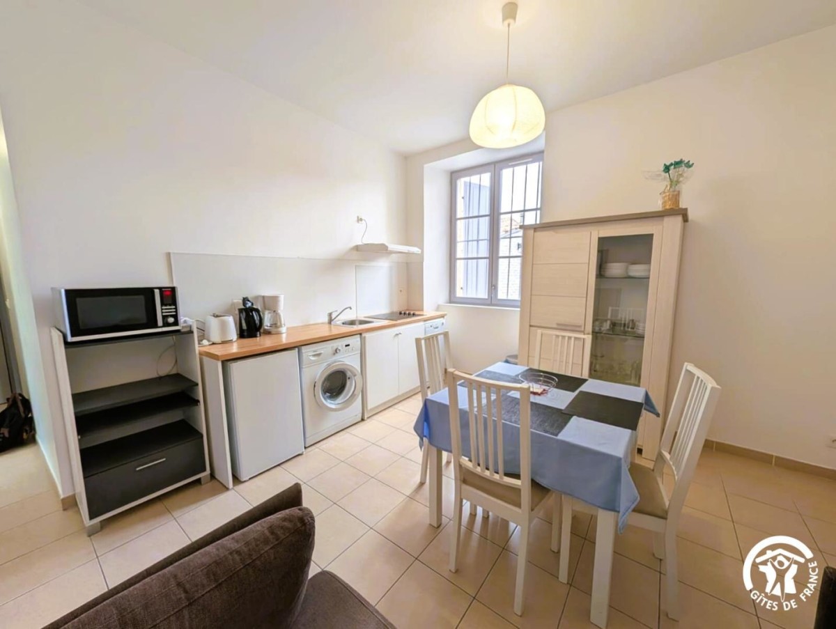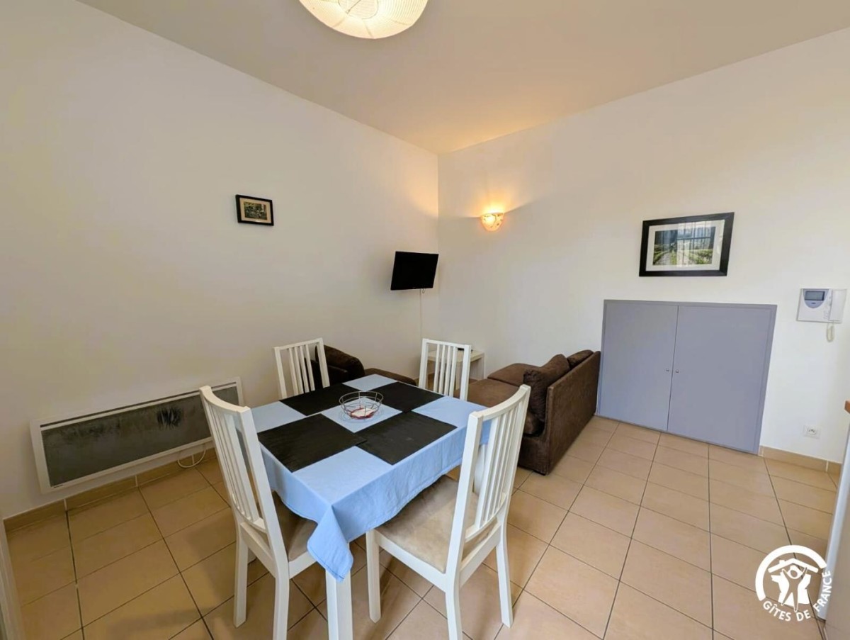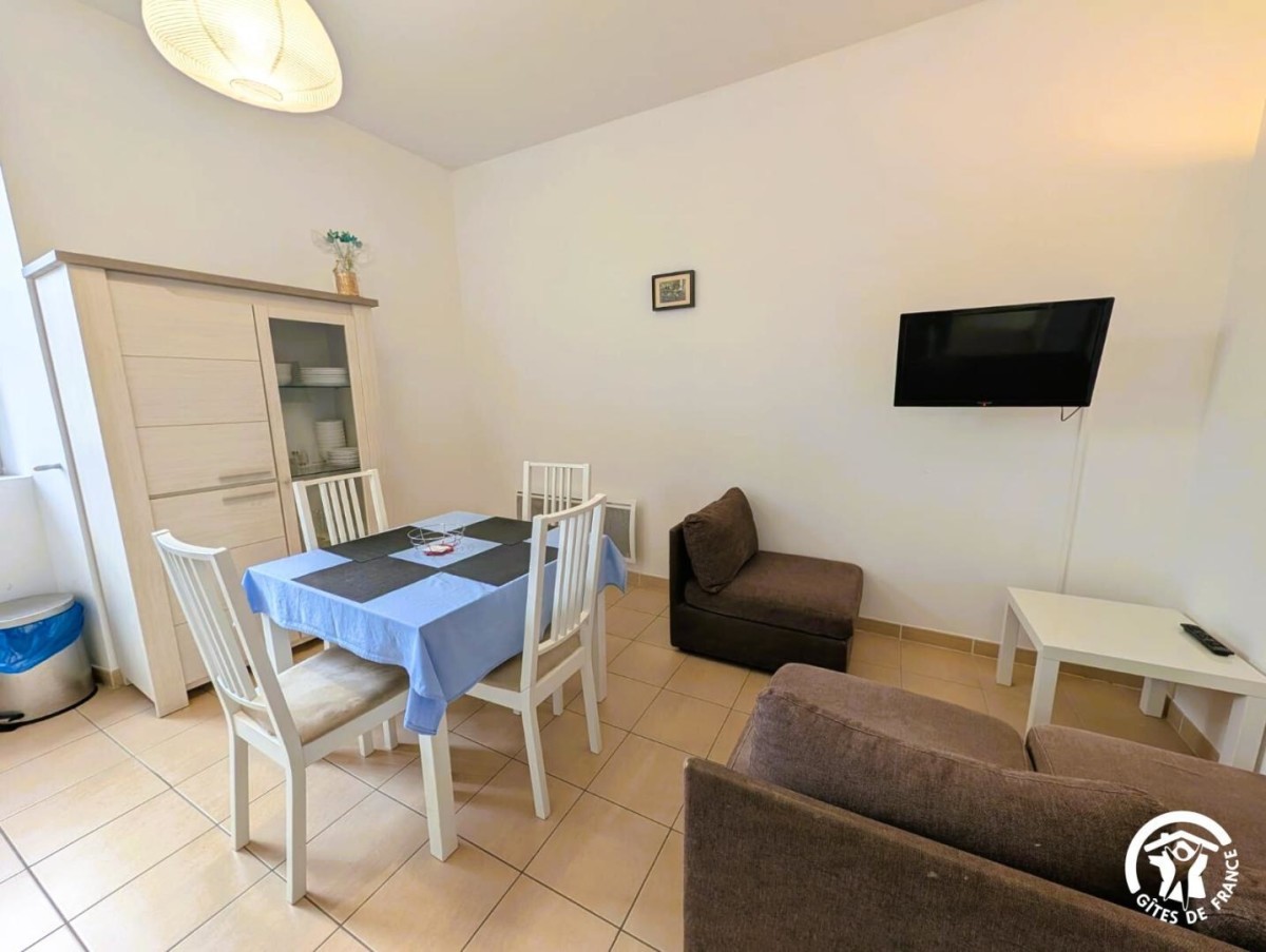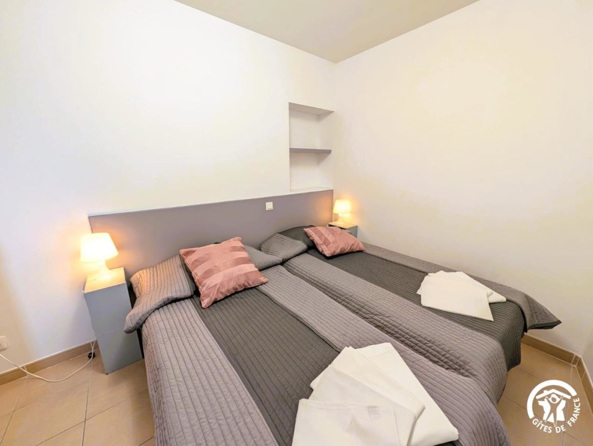Situé au 1er étage, l’hebergement de 48 m² se compose d’un espace cuisine/séjour, 2 chambres (2 lits 1 pers. dans chaque chambre), salle d’eau, wc.