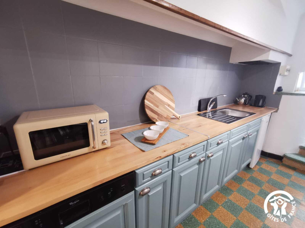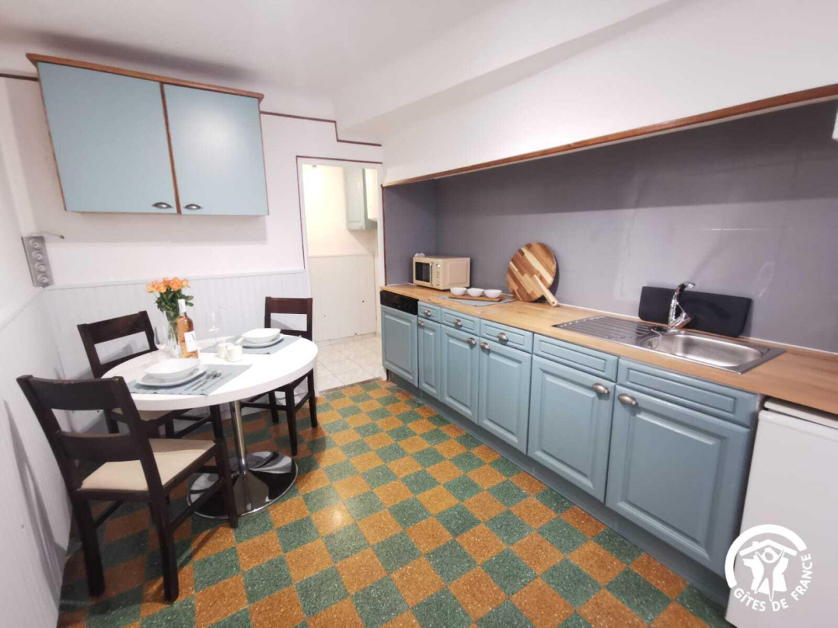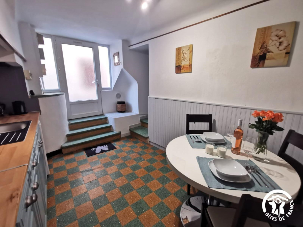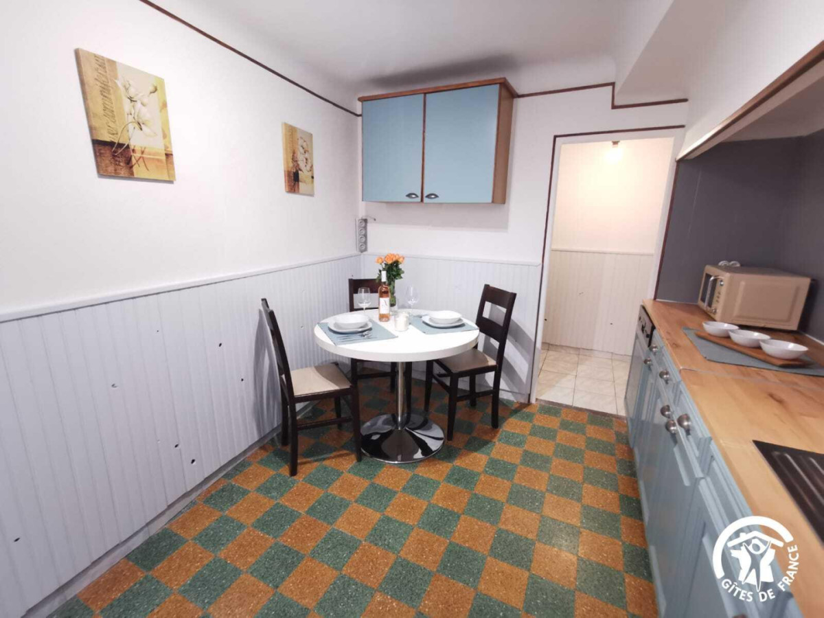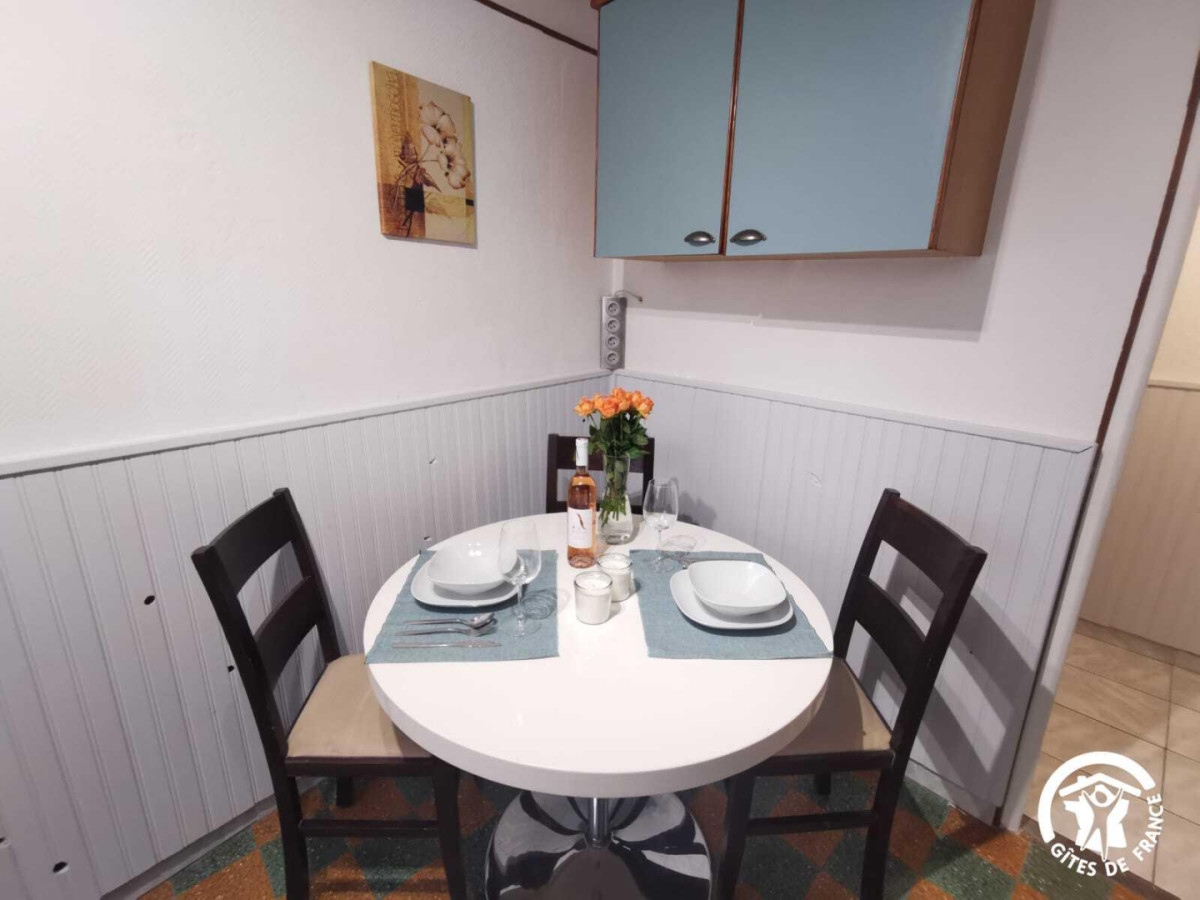 Cette salle à manger/cuisine est accolée à une pièce de rangement où vous pourrez déposer vos affaires de vacances.