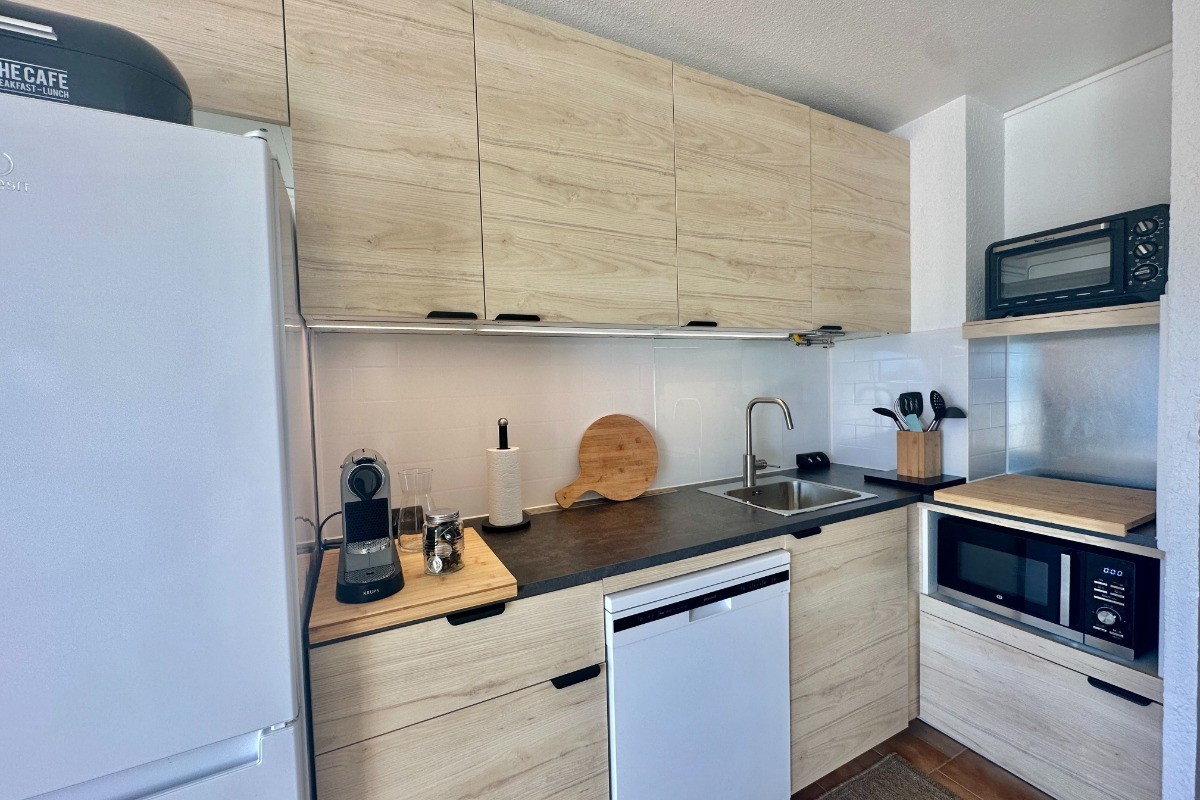 Ce logement de 32 m², complété par une spacieuse terrasse privative de 40 m², est parfait pour vos vacances ou un séjour en bord de mer.