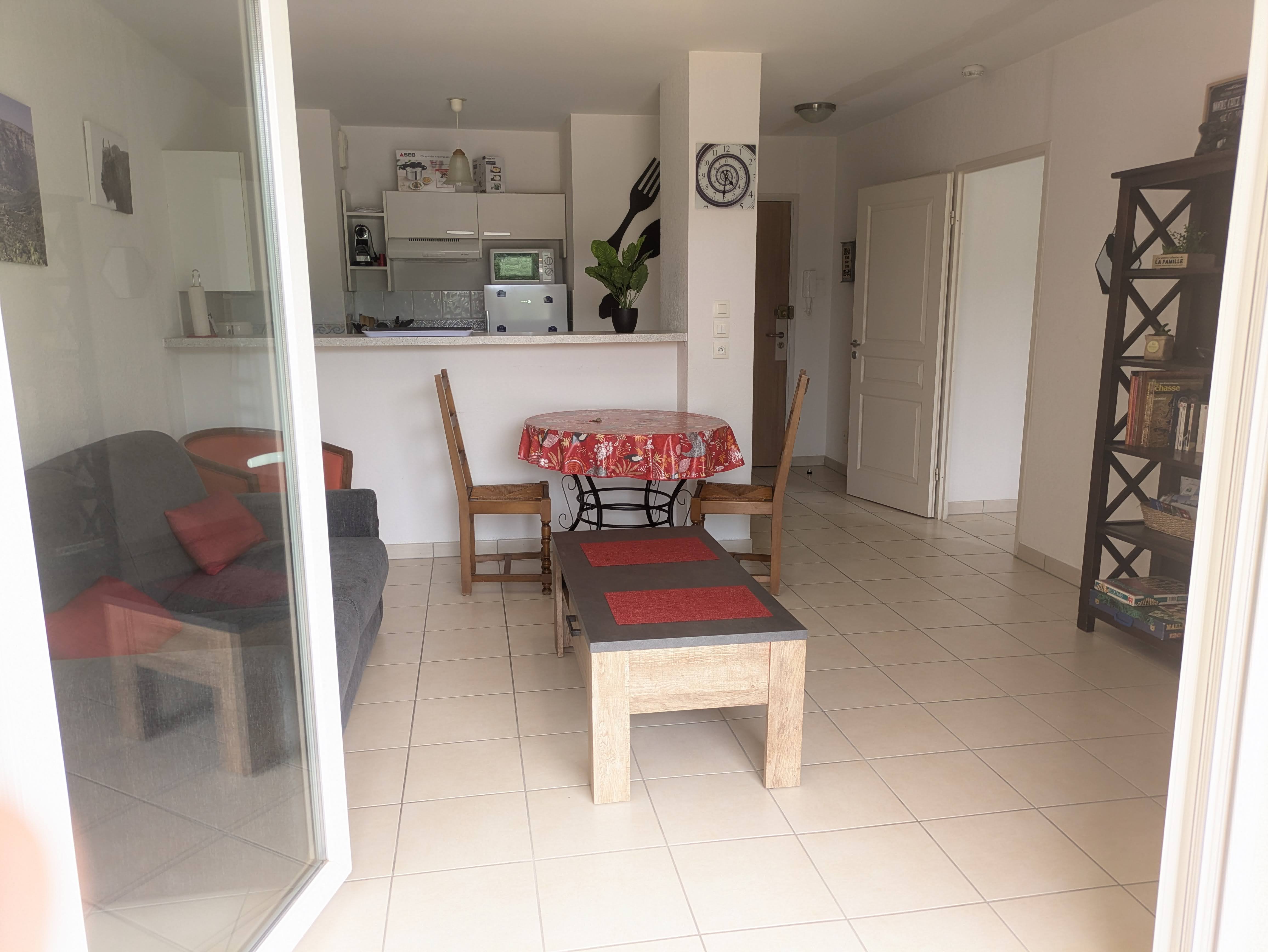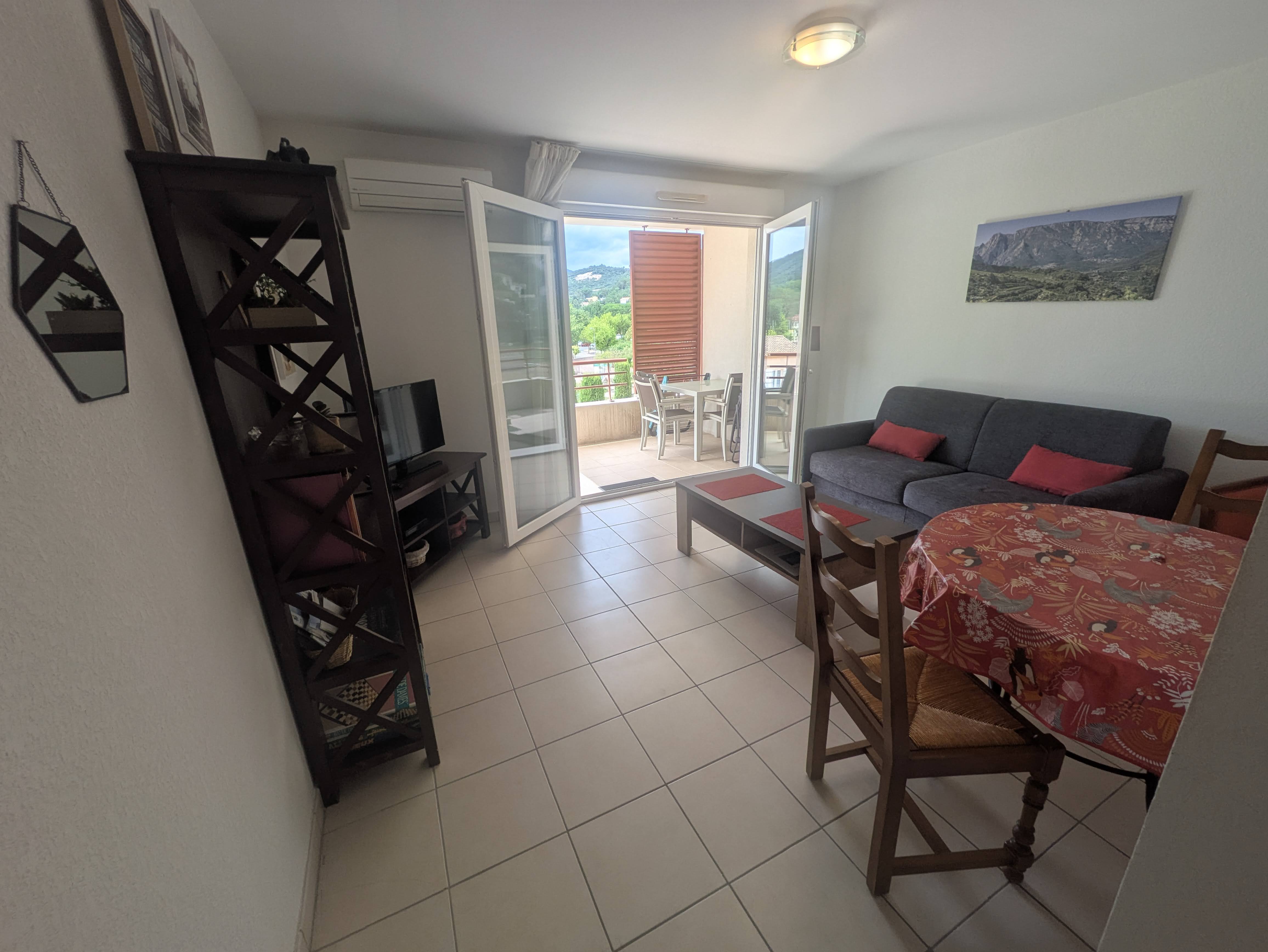 Location pour curistes et vacances d’un appartement T2 climatisé 2-4 personnes de 41m2 au 2ème et dernier étage dans résidence sécurisée Les Patios d’Or avec ascenseur et connexion WIFI.