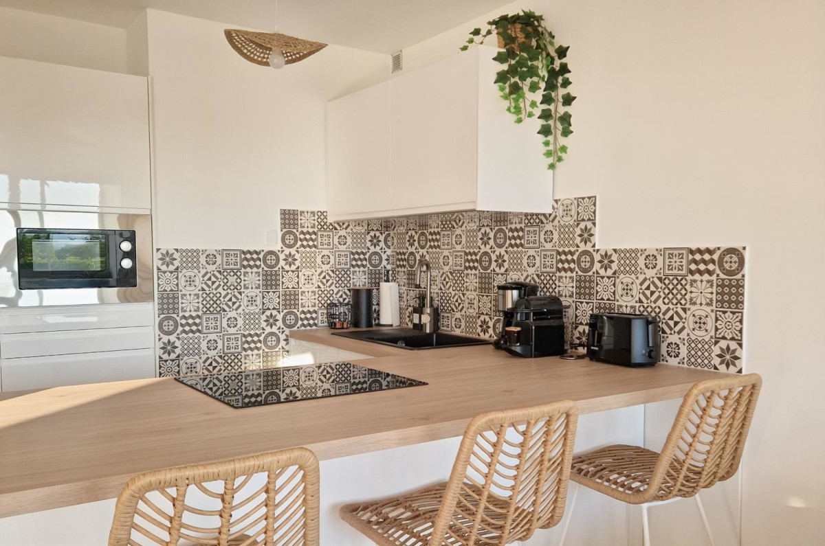 – Une cuisine très bien équipée avec four, micro-ondes, réfrigérateur avec compartiment congélateur, lave-vaisselle, cafetière Nespresso, bouilloire, grille-pain et tout le nécessaire de cuisine ;