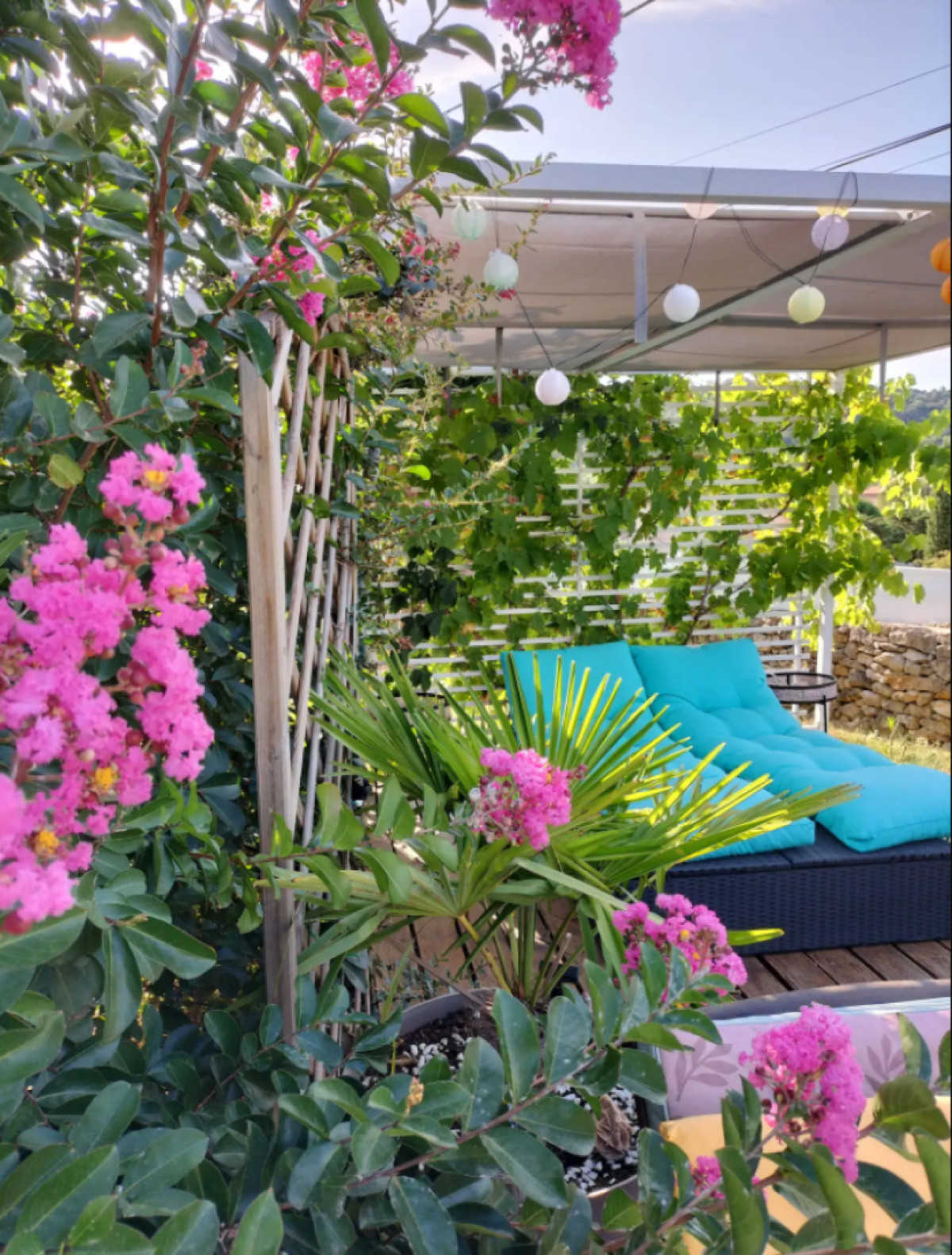 Le stationnement se fait au sein de la propriété avec portail sécurisé. Les propriétaires vivent sur place indépendamment et seront être au petit soin si besoin. Cependant, chacun respecte son espace, et il n’y a pas de vis-à-vis car le mazet est entouré d’arbustes.