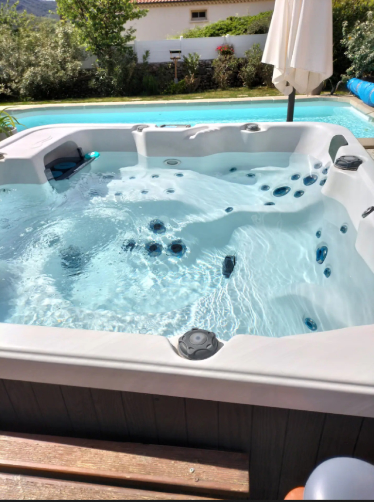 Concernant les extérieurs, rafraichissez vous dans la piscine 9m (partagée avec les propriétaires qui s’y baignent occasionnellement, chauffée de juin a sept) et détendez-vous dans le jacuzzi américain privé. Une terrasse ombragée devant le mazet est à votre disposition ainsi qu’un jardin avec barbecue.