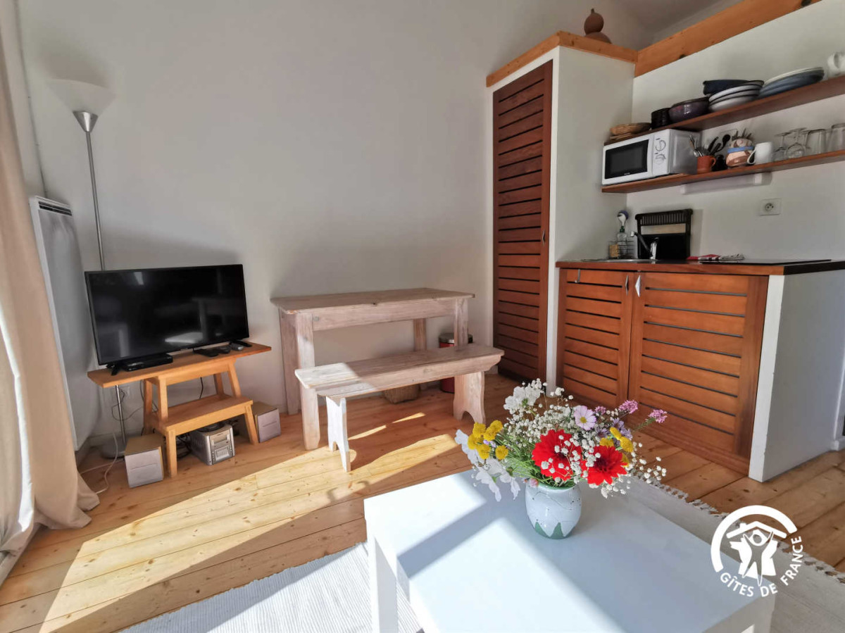 D’une surface de 22 m², vous trouverez dans ce petit nid douillet tout le confort nécessaire pour profiter pleinement de votre escapade. Ce studio est composé d’un coin cuisine, d’un salon-séjour avec un canapé confortable, d’une chambre (lit en 140 x 190) avec une salle d’eau attenante et un WC séparé.