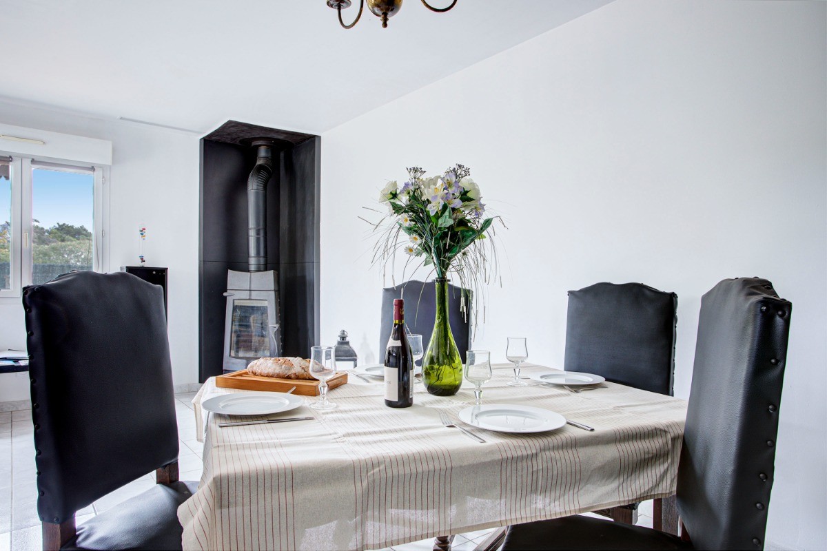 La deuxième terrasse exposée Est/Ouest avec table et 4 chaises pour les repas pris en extérieur.