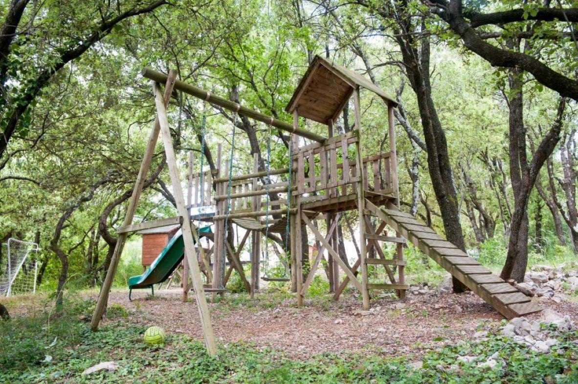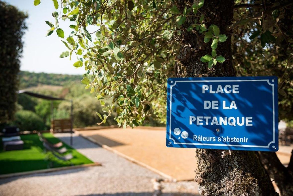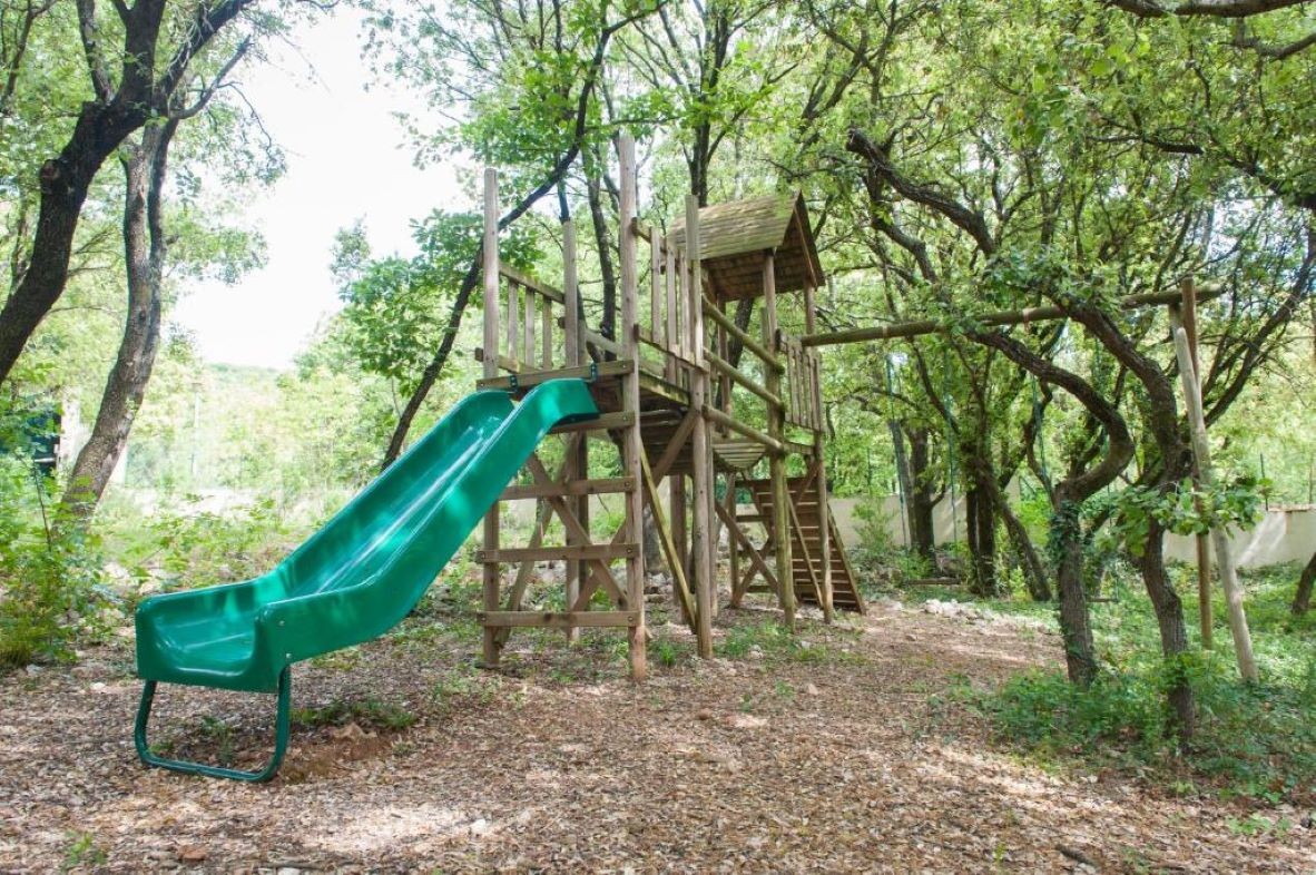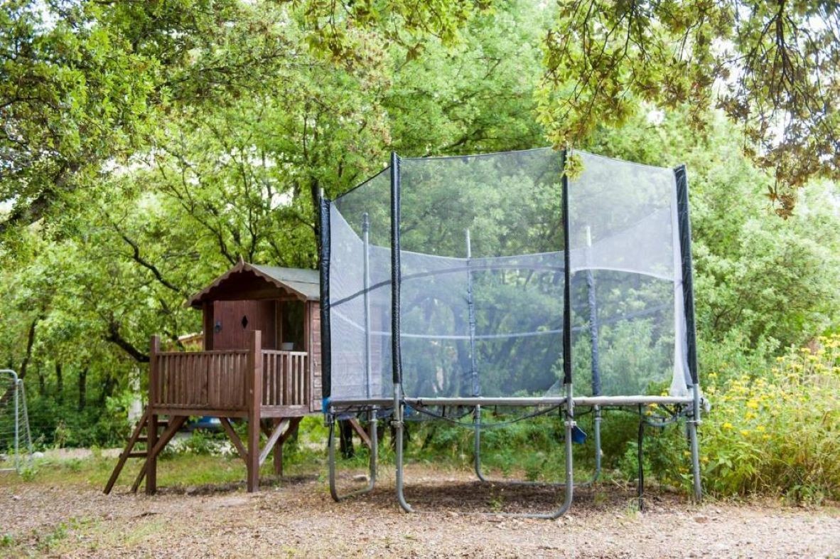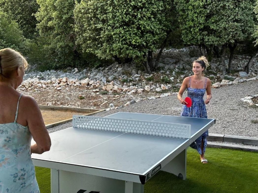 L’espace extérieur est pensé pour la détente et le divertissement avec une piscine chauffée au sel de 11×5 mètres, équipée d’une couverture de sécurité électrique et d’une pompe à chaleur assurant une température optimale. La piscine est entourée d’un espace solarium avec transats, et d’un pergola ombragé idéal pour se relaxer. Une douche extérieure à énergie solaire, un boulodrome, une table de ping-pong, ainsi qu’une aire de jeux avec toboggan, balançoires, mur d’escalade et trampoline complètent les équipements de loisirs.