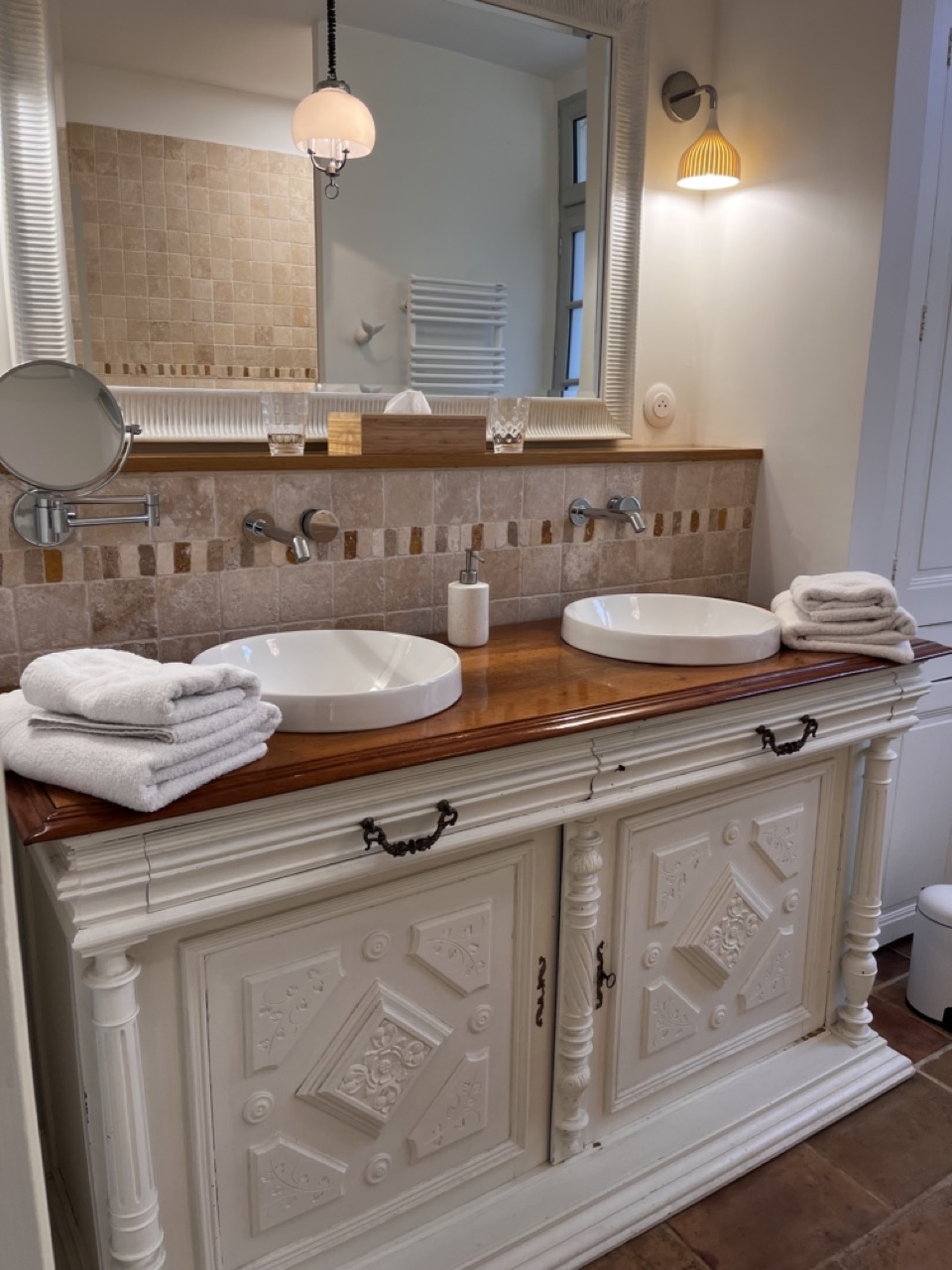 Chaque chambre possède sa propre salle de bain et ses toilettes séparés.