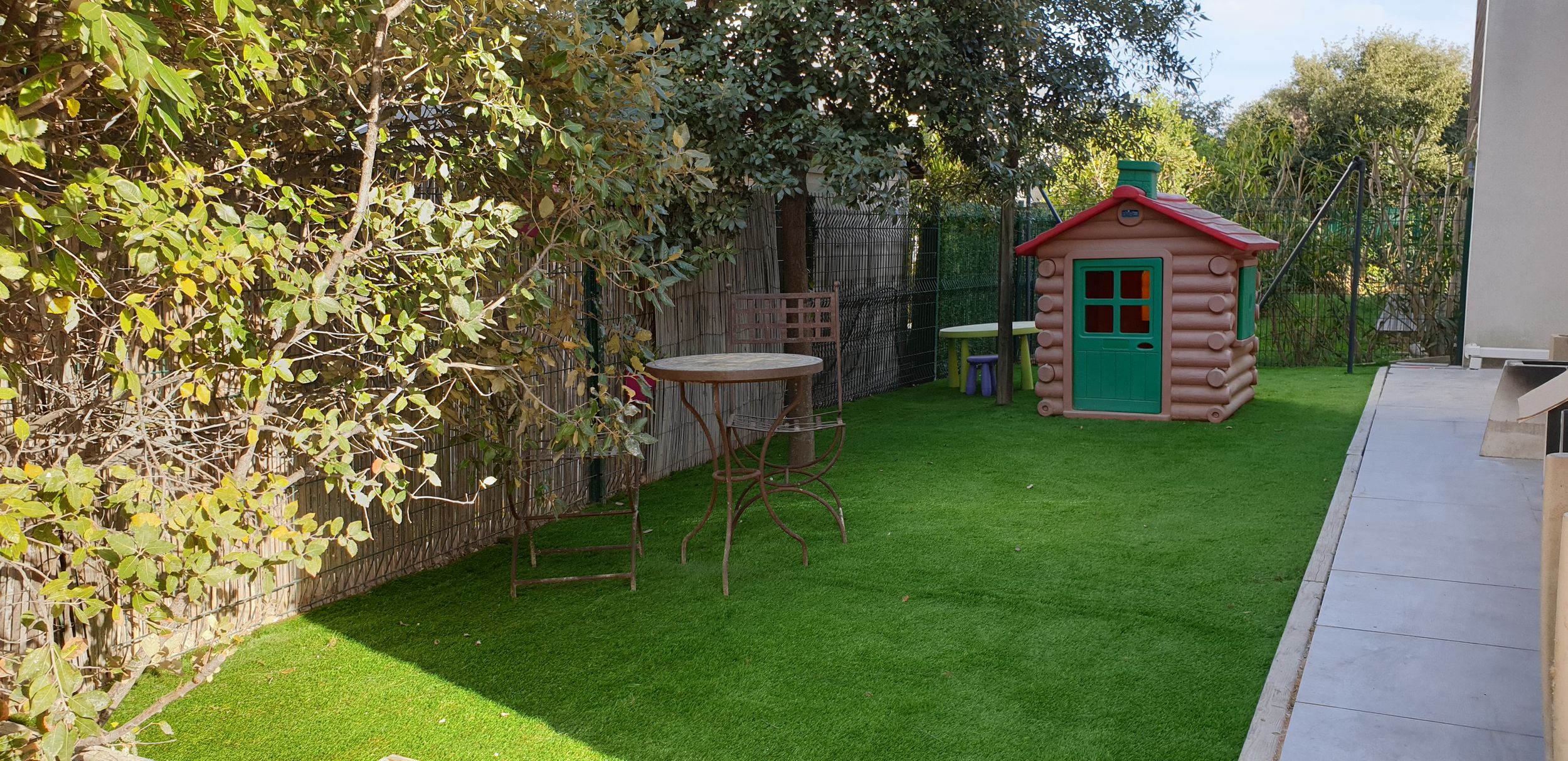 •Deux terrasses en rez de chaussée avec salon de jardin pour profiter du soleil ou de l’ombre
