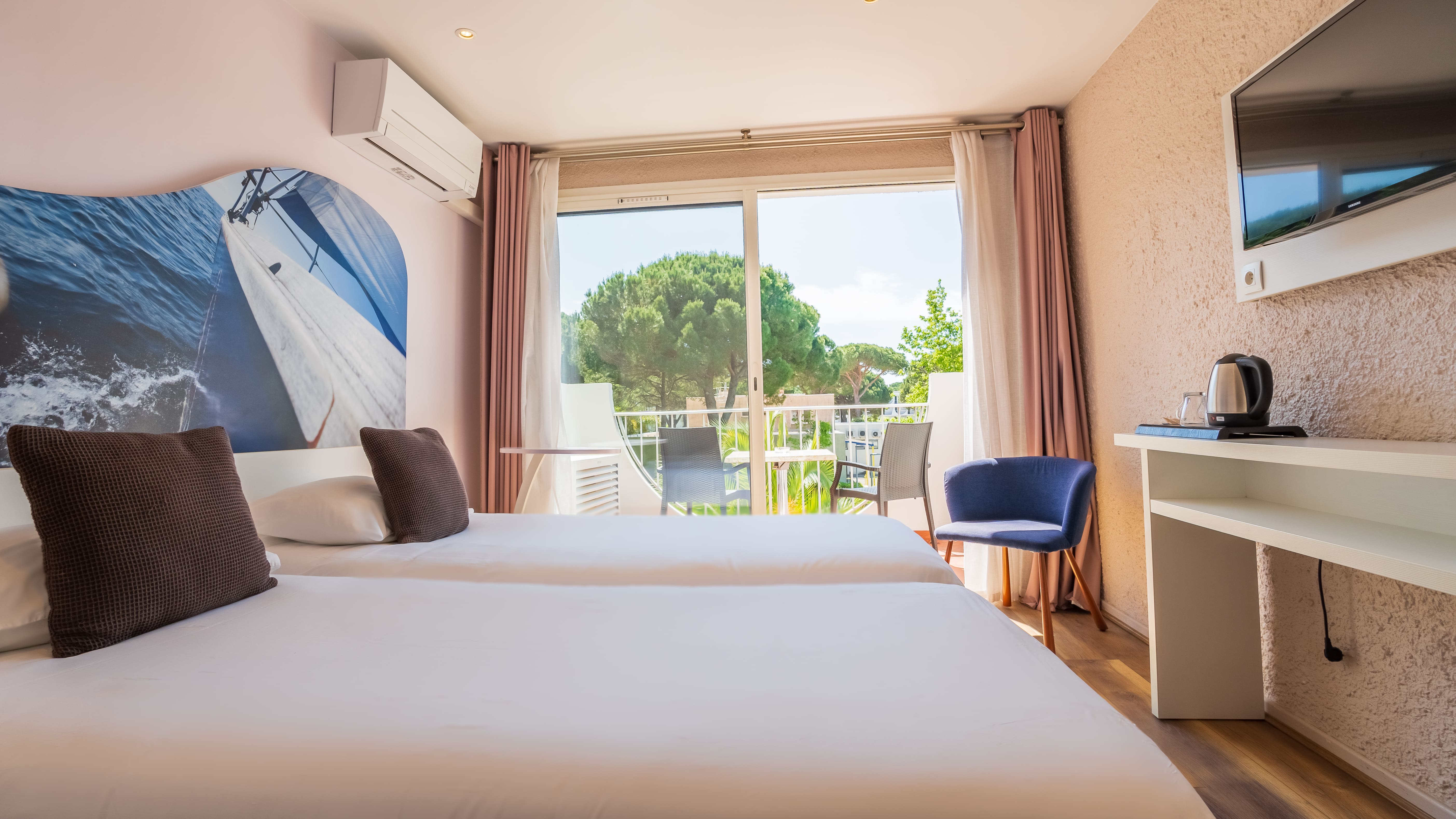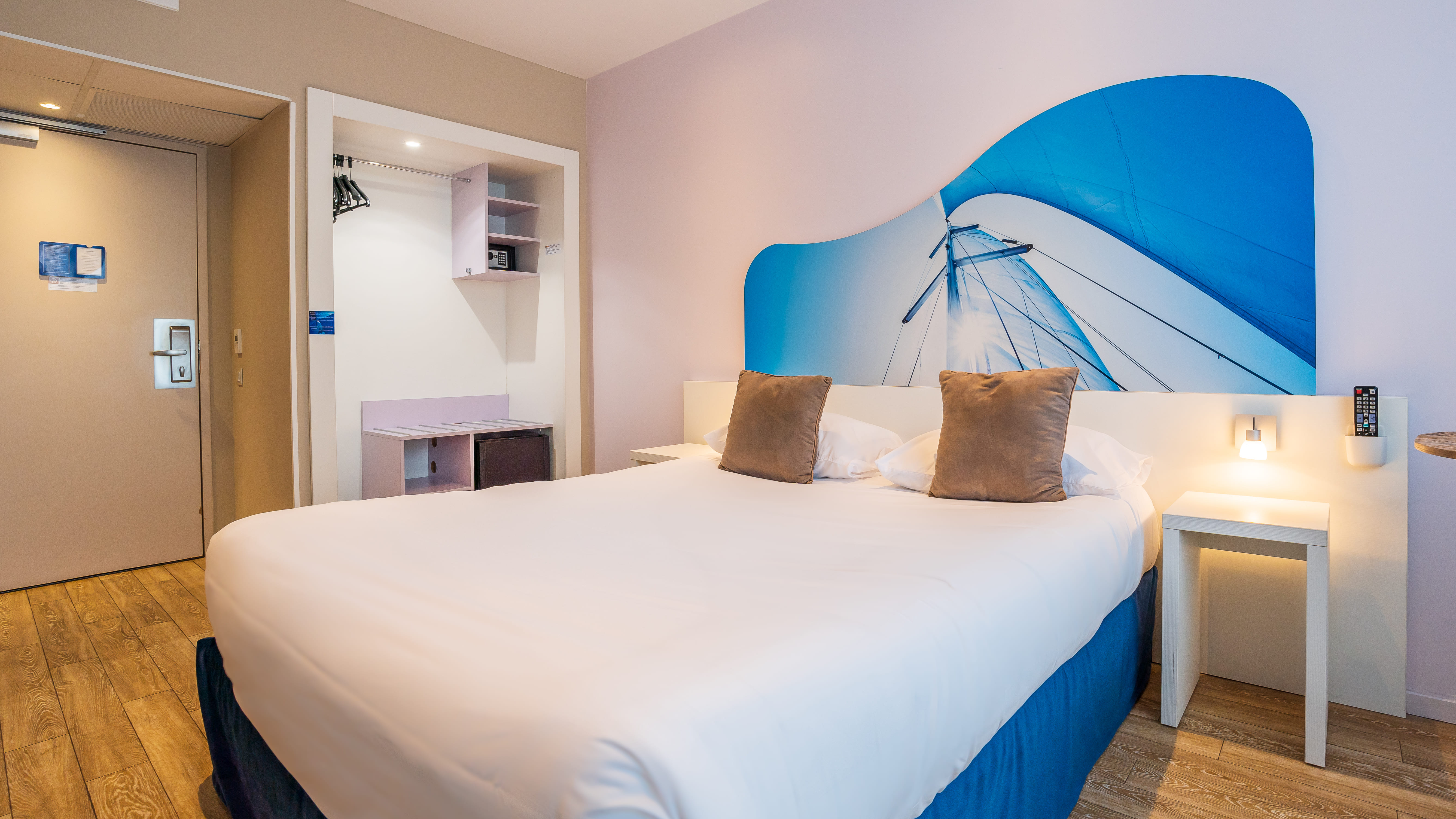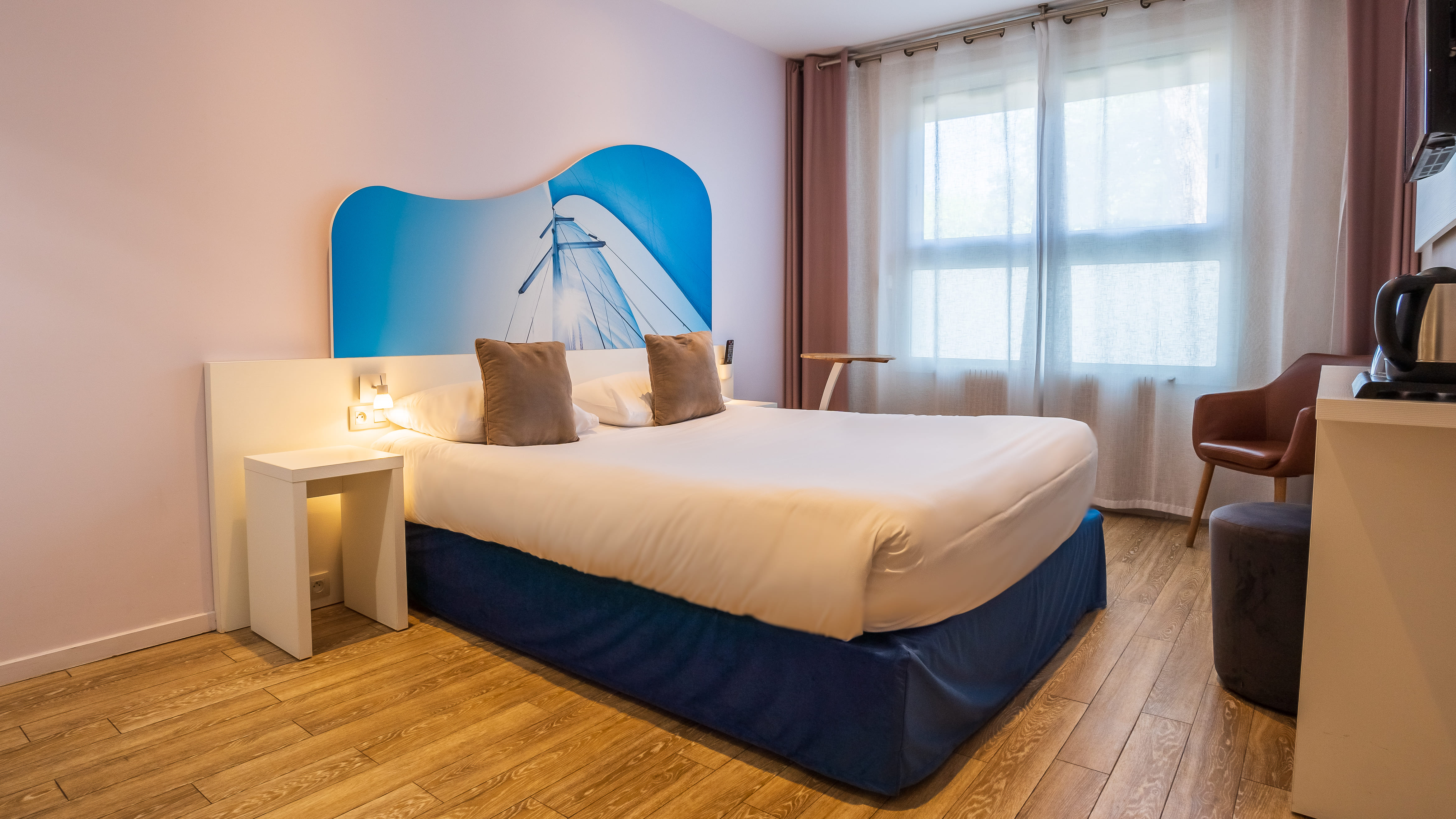 Nos chambres « Tribord », situées plein sud, disposent toutes d’un balcon ou d’un coin salon avec vue sur le jardin et la piscine aux abords fleuris. Les autres chambres sont dites « Bâbord ». Il est possible de garer votre voiture soit dans l’un des parkings gratuits attenant à l’hôtel soit dans notre parking privé fermé à 10€ (sur réservation).