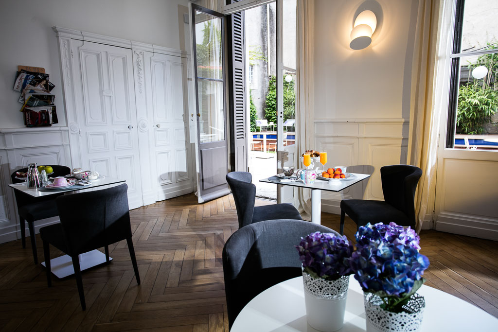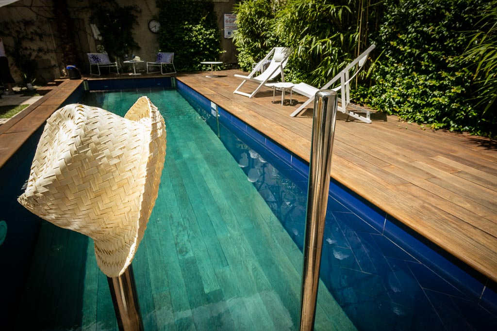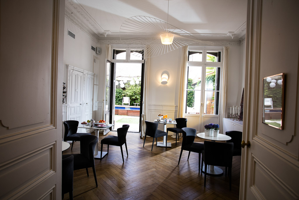 A l’arrière, un agréable jardin avec son couloir de nage et sa terrasse vous invite à prendre un petit-déjeuner très « particulier » (servi jusqu’à midi !).