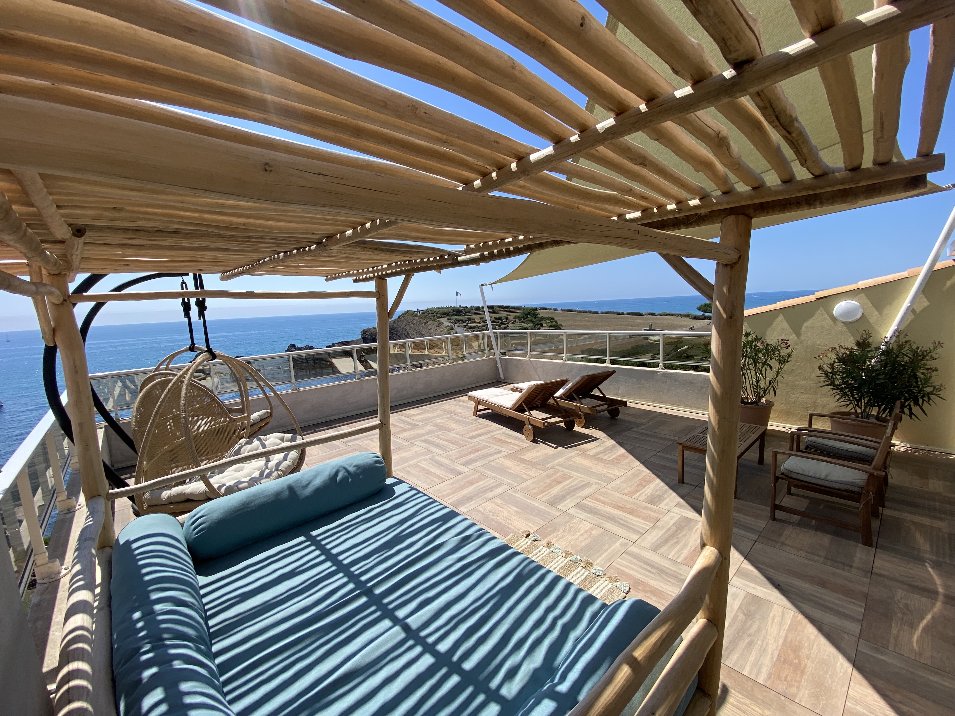 Chambres avec vue sur mer ou vue du côté du Fort Brescou avec terrasse privative.