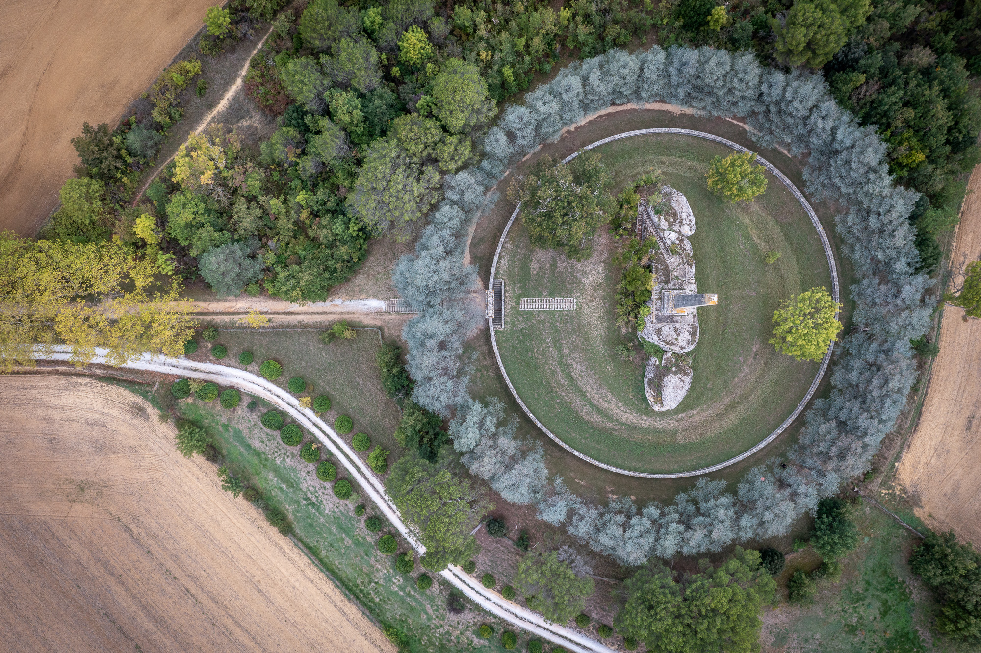 La cité médiévale de Lagrasse se découvre lentement, comme on feuillette un vieil ouvrage. Pour commencer la journée, c’est un plaisir de déambuler dans les rues pavées et admirer les maisons en pierre centenaires. Nos pas nous mènent naturellement vers la halle couverte où nous imaginons les générations d’artisans, de marchands et de drapiers qui ont transité par cet endroit depuis plus de six cents ans. Nous empruntons le pont vieux qui relie le bourg à l’abbaye pour marcher sur les pas des moines. Nous sommes émerveillés par le riche patrimoine de l’abbaye, témoins de son passé médiéval. Après cette immersion dans le temps, nous empruntons un chemin jusqu’au rocher de la Cigalière pour atteindre un point de vue sur l’abbaye, la vallée, et les Hautes-Corbières. Nous nous dirigeons vers une autre abbaye toute aussi remarquable, celle de Fontfroide. À la vue de l’Orbiteur, affluent du fleuve Aude, nous ne résistons pas à l’appel de ses eaux claires et y mettons les pieds ! Rafraîchis par cet arrêt salvateur, nous poursuivons notre escapade à travers d’immenses paysages de vignobles du Cru Boutenac au milieu desquels se dresse le château de Saint-Martin-de-Toques. Arrivés à l’abbaye de Fontfroide, nous rechargeons les batteries : celles du vélo et les nôtres ! Nous grimpons jusqu’à la Croix de l’Abbé de Fontfroide pour surplomber l’abbaye et ses environs. Un déjeuner et une redescente plus tard, le tour de l’abbaye est une véritable évasion entre minéral et végétal. La visite de l’abbaye s’achève par la roseraie, où de nombreuses fleurs profitent de la douceur de ce mois d’octobre pour s’offrir en spectacle. Un ravissement pour les sens. Nous reprenons les vélos pour continuer à battre la campagne audoise. Longeant à nouveau des rangs de vignes orangées, nous traversons des paysages de plaines. Après avoir enjambé le fleuve Aude, notre sentier débouche sur le canal du Midi au niveau de Ventenac-en-Minervois. Longer l’eau calme nous apaise et nous découvrons avec joie le château de Ventenac en Minervois dressé au-dessus du canal. Le village de Sallèles-d’Aude nous surprend par sa beauté avec les façades des maisons de maître en bordure de la voie d’eau. - 3 De Sallèles-d’Aude à Quarante