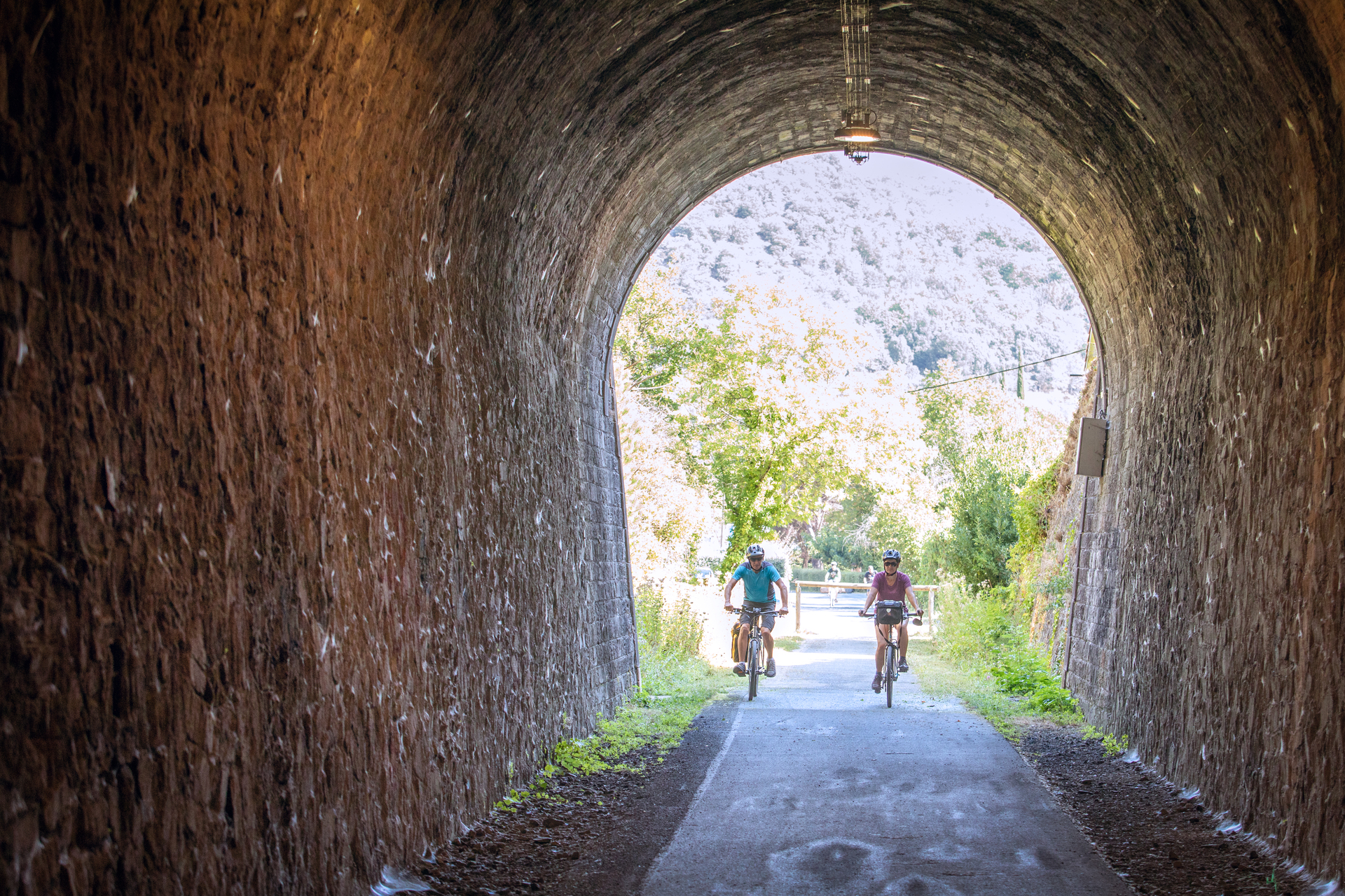 De Mazamet à Béziers, La Véloccitanie offre une traversée variée du sud de la France. On quitte la Montagne Noire pour suivre la PassaPaïs au cœur du Parc naturel régional du Haut-Languedoc, entre pâturages, rivières et villages perchés. Le tunnel de la Fenille marque l’entrée dans une ambiance plus méditerranéenne avant de rejoindre Saint-Pons puis la vallée du Jaur et de l’Orb, dominée par le Caroux. Olargues et son pont Eiffel constituent un moment fort, tout comme les Gorges d’Héric pour les plus curieux. Après Bédarieux, les montagnes cèdent la place aux vignes des Avant-Monts. L’itinéraire révèle ensuite l’Oppidum d’Ensérune, l’étang de Montady, le tunnel du Malpas et les écluses de Fonseranes, avant l’arrivée à Béziers et son riche patrimoine.
