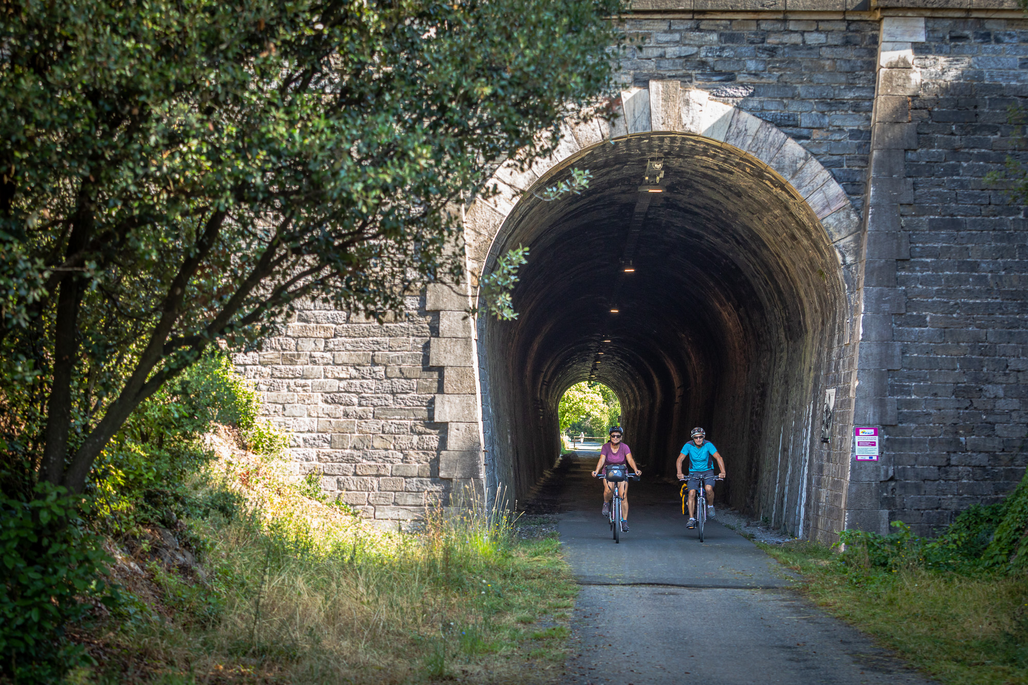 L’étape est jalonnée en totalité dès Mazamet, aux abords de la voie de chemin de fer. Elle se déroule en quasi-totalité sur une voie verte dédiée aux véhicules non motorisées.Le tracé s’étire parallèlement à la D 612, il s’en éloigne relativement selon les portions.Traversée de plusieurs tunnels, tous équipés d’éclairages à allumage par détection de présence.Court passage jalonné sur la D 907 (600 m. env.), route partagée peu fréquentée, afin de rejoindre la ville étape de Saint-Pons-de-Thomières.Revêtement stabilisé principalement en sable compacté et asphalte selon les portions. Un seul passage très court (150 m. env.) avec cailloux peu après la sortie de Labastide-Rouairoux. - 5 De Saint-Pons-de-Thomières à Bédarieux