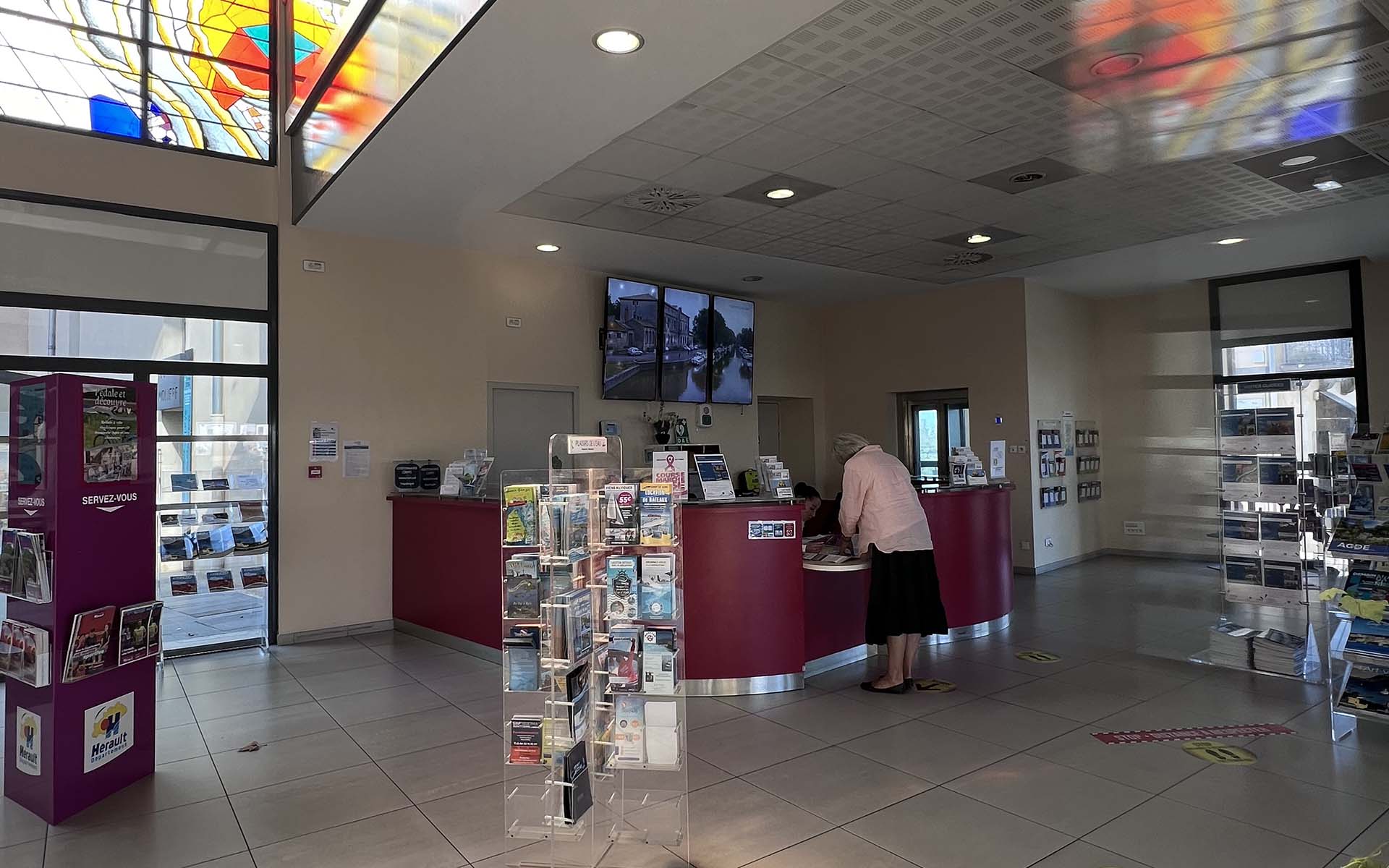 L’entrée au sein du bureau d’information touristique s’effectue grâce à un plan incliné ou par un escalier avec main courante selon les besoins de chacun.