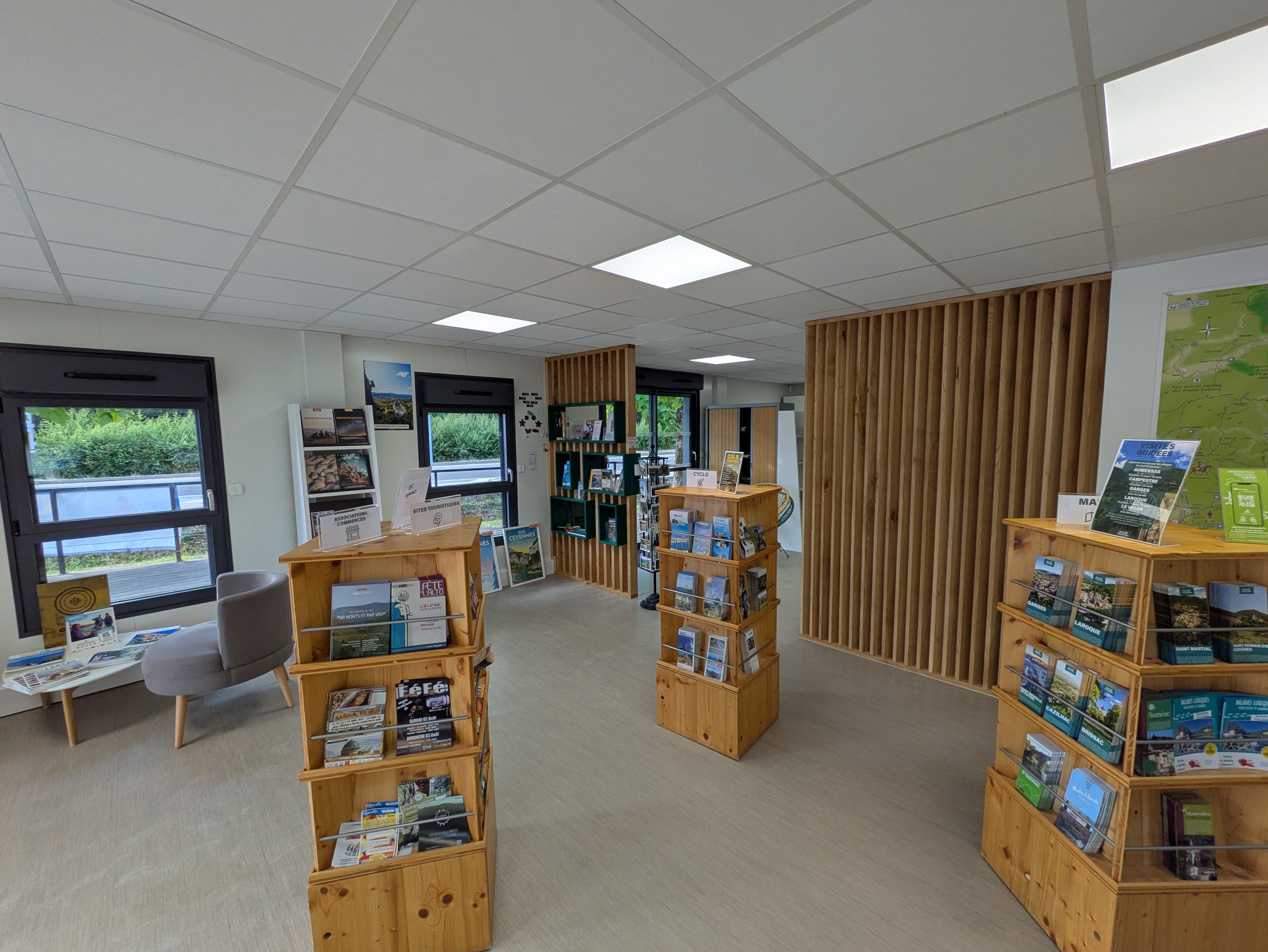 Vous trouverez sur place un espace wifi, une terrasse pour lire les brochures touristiques, une boutique et un accueil avec des totems thématisés !