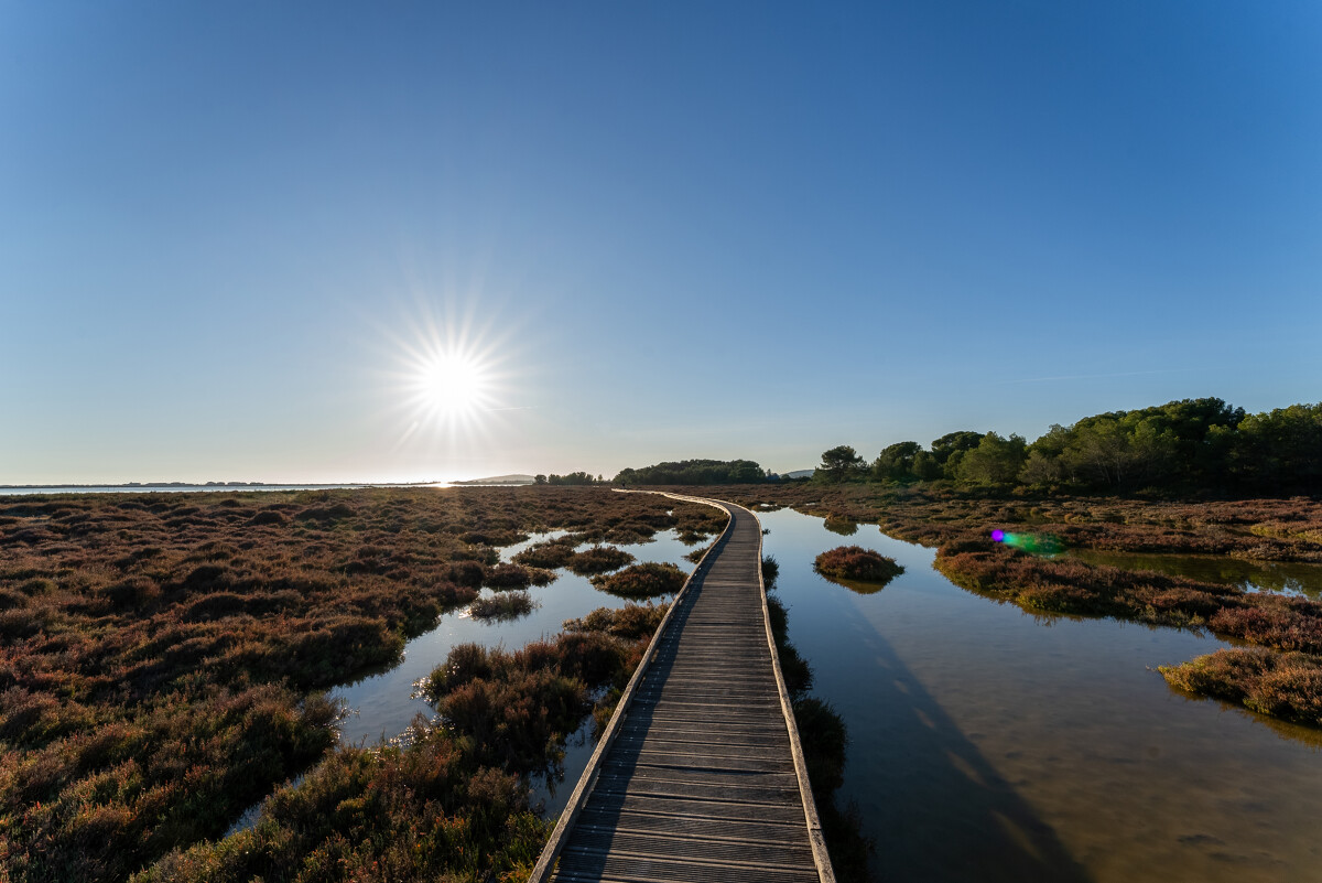 Niché entre les lagunes de Vic et d’Ingril, le bois des Aresquiers offre un paysage unique où la pinède méditerranéenne côtoie directement les étangs salés. Cette rareté géographique, partagée seulement avec l’île de Sainte-Lucie dans l’Aude, dévoile une mosaïque de milieux exceptionnels : des sansouires aux prés salés, des steppes aux boisements denses qui donnent parfois l’impression d’une véritable forêt vierge. Les points de vue sur les lagunes depuis les sentiers serpentant dans la pinède constituent des panoramas saisissants, particulièrement appréciés des photographes et des amoureux de nature sauvage.