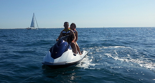 Pilotez un Jetski le long des plus belles plages de l’Hérault ! A 15 minutes de Palavas, Carnon, Montpellier et à 5 minutes de Sète, vous êtes accueillis par de véritables amoureux de sports nautiques ! Encadrés par des moniteurs diplômés, vous conduisez avec ou sans permis bateau la dernière génération de Jetski Yamaha. Nous adaptons nos programmes de navigation : randonnées, location, initiation, détente, vitesse, seul ou à deux… A partir de 16 ans pour piloter (autorisation parentale). Baptême à partir de 4 ans.