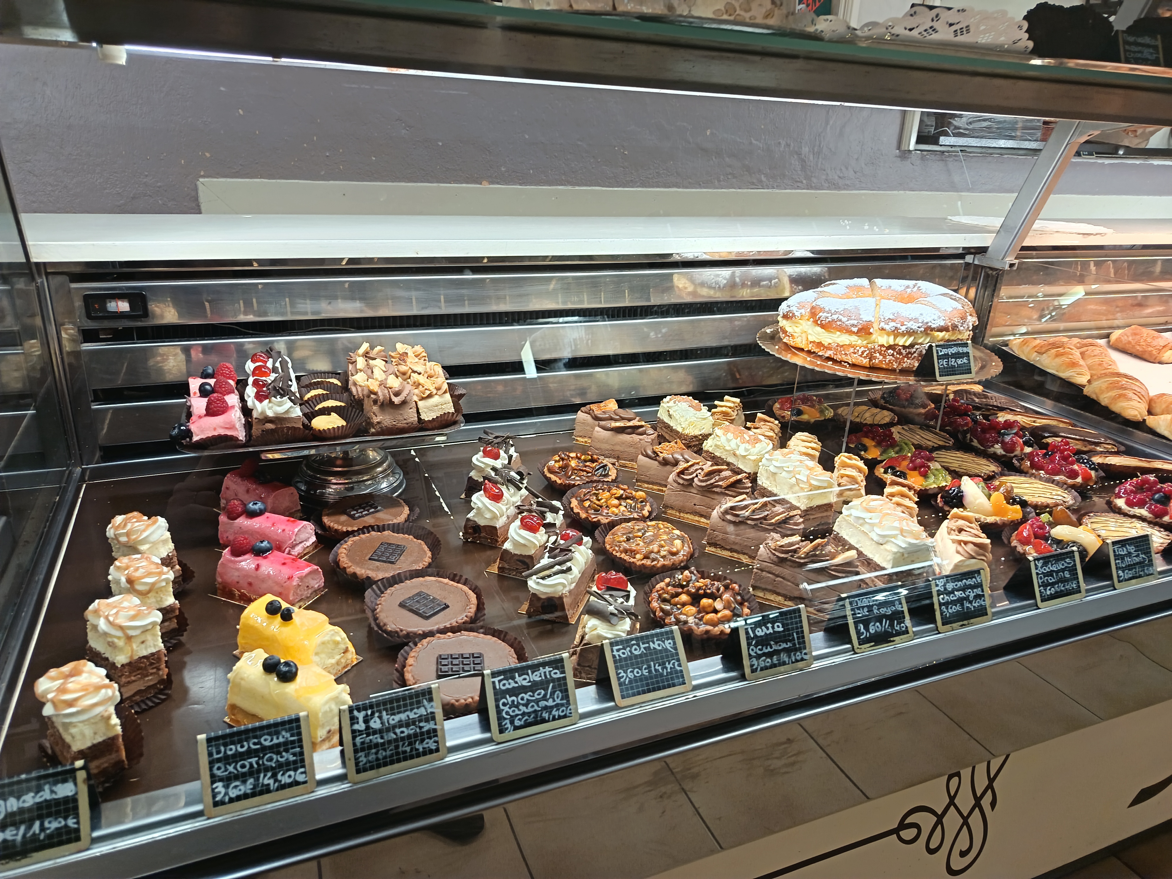 Les pâtisseries offrent une explosion de saveurs : éclairs au chocolat onctueux, tartes aux fruits de saison généreusement garnies et « Le Lodévois » spécialité à la crème au beurre praliné.
