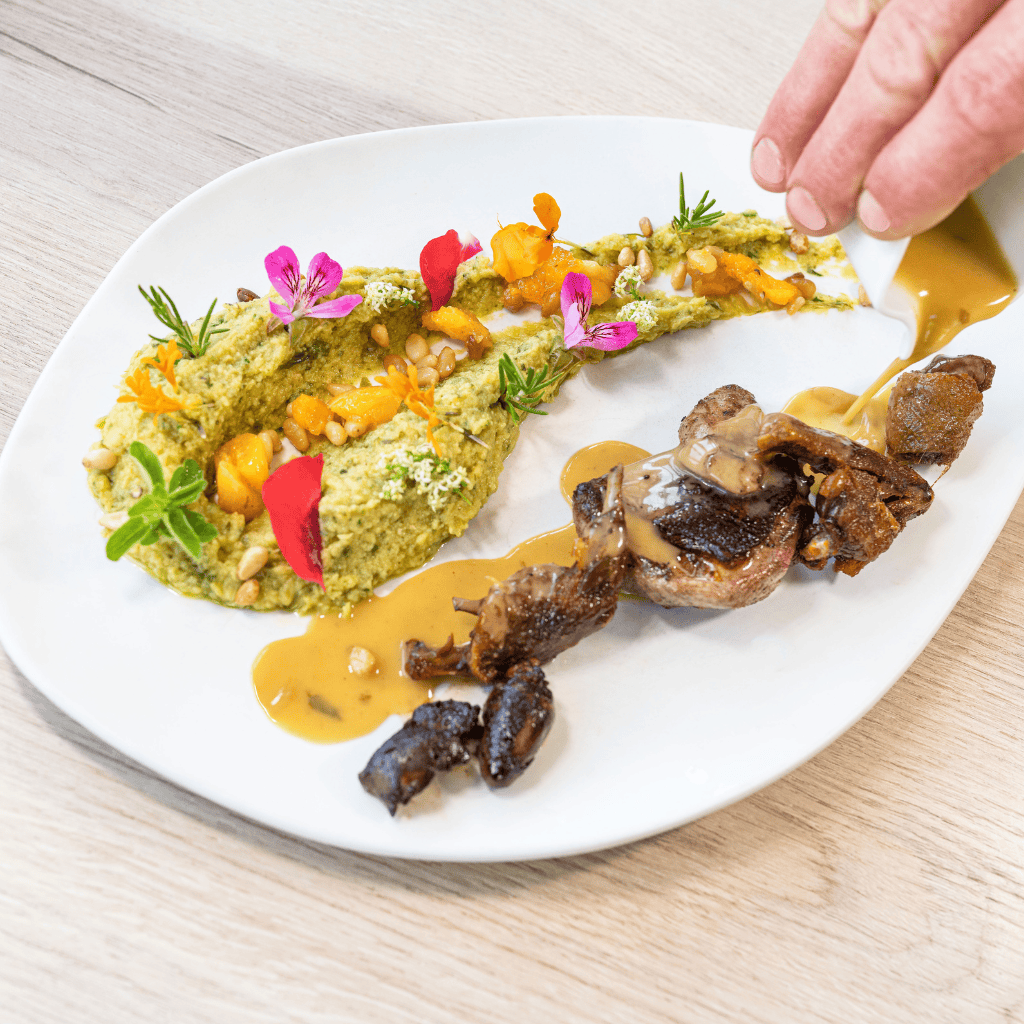 Basés au cœur du Parc Régional du Haut-Languedoc, dans le charmant village viticole de Berlou, nous avons choisi de collaborer avec des producteurs locaux afin de créer des recettes gastronomiques alliant respect des traditions et préservation de l’environnement. Nous mettons un point d’honneur à sélectionner des ingrédients de première qualité, issus de circuits courts, pour élaborer des plats aussi savoureux qu’authentiques.